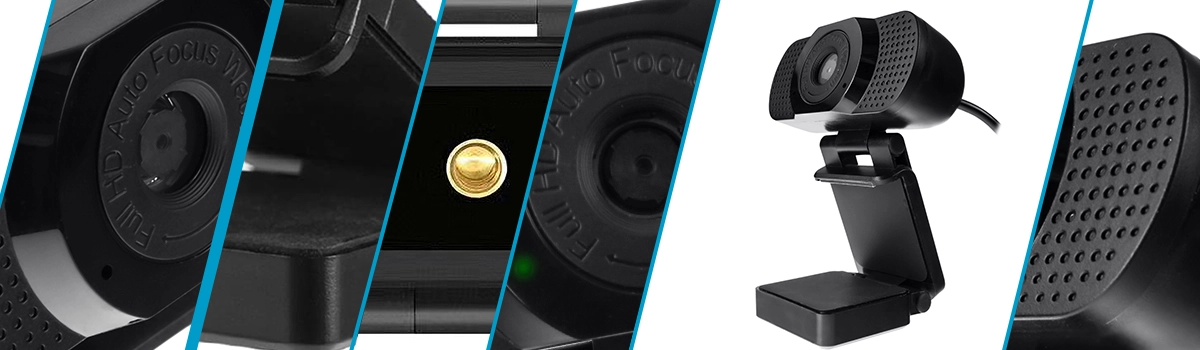 • Spacetronik kamera internetowa FHD+ Mini Statyw, 30fps, AutoFocus, CMOS 1/2,7", FOV 80 stopni, USB 2.0, przewód długość 1,8m, wbudowany mikrofon, format wideo MJPEG. Wbudowany Auto Focus