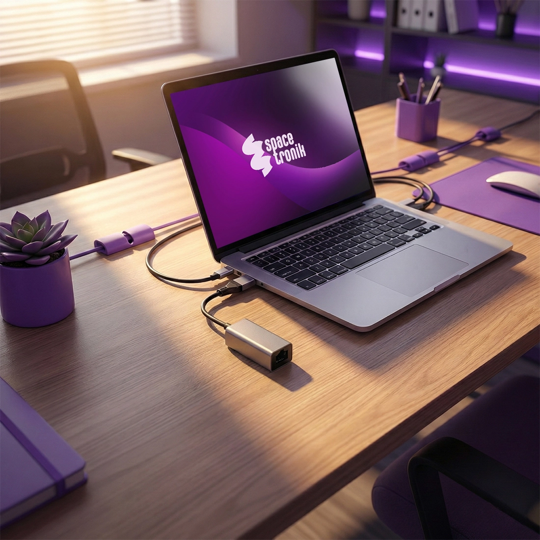 Adapter Spacetronik znacząco zwiększa moc Twojego połączenia internetowego, eliminując opóźnienia i optymalizując przepustowość sieci. Dzięki temu możesz korzystać z pełnej mocy swojego łącza LAN, co jest idealne dla wymagających użytkowników oraz profesjonalistów pracujących zdalnie.