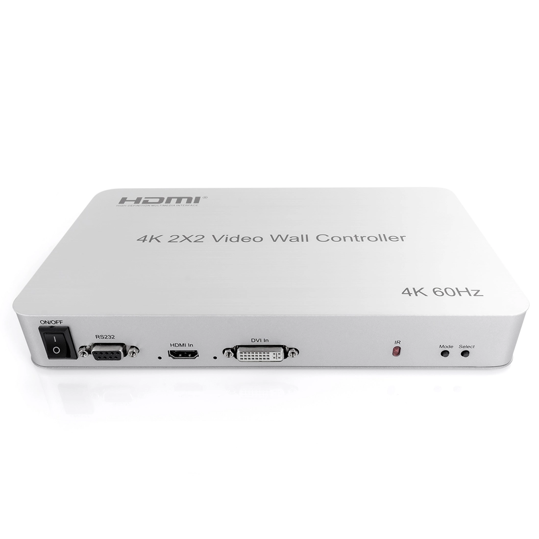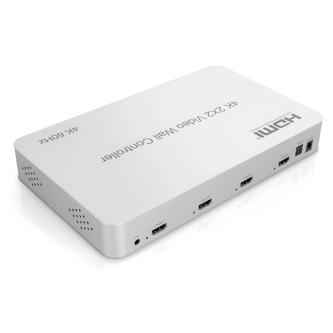 Kontroler ściany wideo 4K 60Hz 2x2 obsługujący 1wejście HDMI lub DVI i 4 wyjścia HDMI. Główną funkcją kontrolera ścian jest podzielenie pełnego obrazu HDMI lub DVI HD na 4 bloki i przypisanie do 4 jednostek wideo (takich jak tylna jednostka projekcyjna , Telewizor LCD itp.). Dzięki urządzeniu można stworzyć duży, dynamiczny obraz o wysokiej jakości.