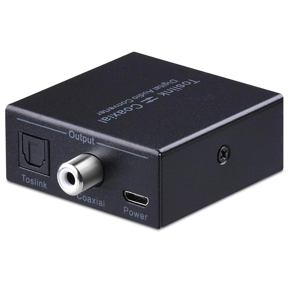 - Dwukierunkowy Konwerter Coaxial i Optyczny: Za pomocą przełącznika wybierz źródło wejściowe pomiędzy Toslink a Coaxial.