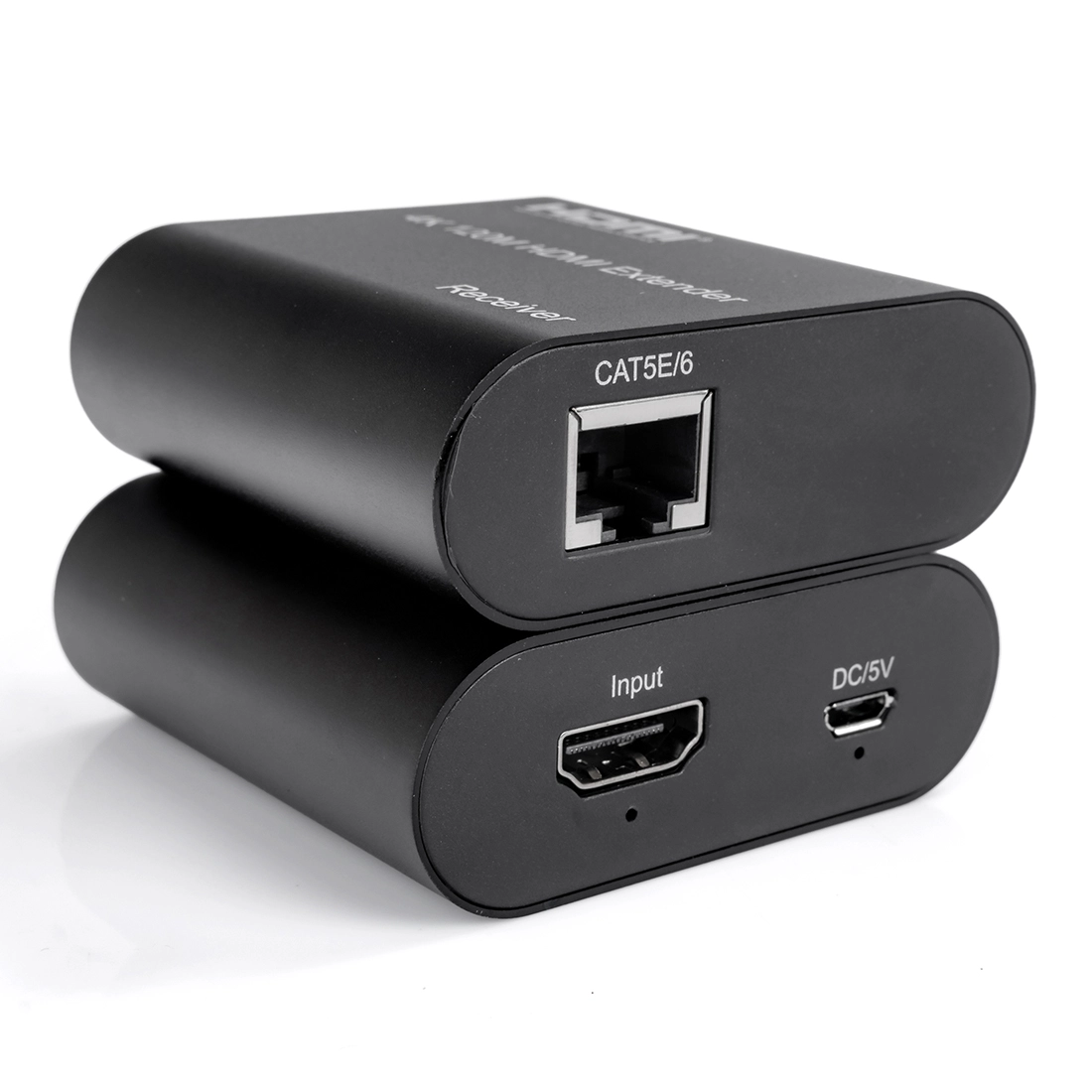 Podłączenie konwertera HDMI na LAN jest w tym przypadku bardzo łatwe. W zasadzie wystarczy podłączyć wejściowe HDMI np. z Laptopa, DVD, konsoli etc. do nadajnika (Transmitter), urządzenie wyjściowe takie jak monitor, projektor, telewizor podłączyć do odbiornika (Receiver). Następnie należy podłączyć oba urządzenia ( nadajnik oraz transmiter) ze sobą za pomocą kabla LAN w zależności od preferencji oraz podłączyć zasilanie ( kabel USB w komplecie).