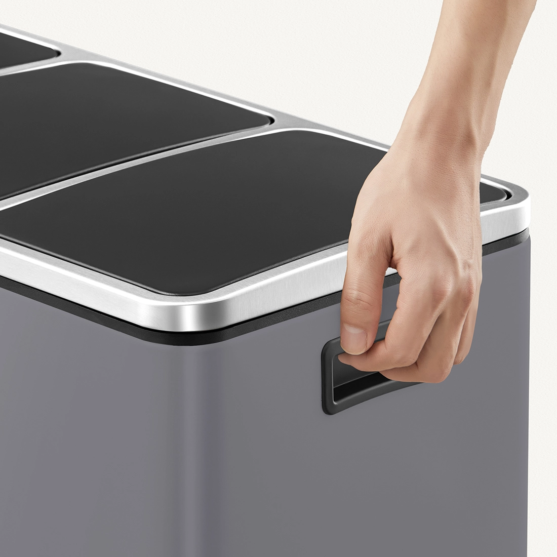 - Potrójna komora: Umożliwia łatwą segregację śmieci i recyklingu dzięki trzem oddzielnym pojemnikom.