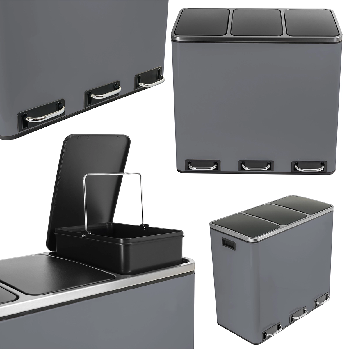 Opinie o Kosz na śmieci metalowy 3x18L szary 54L