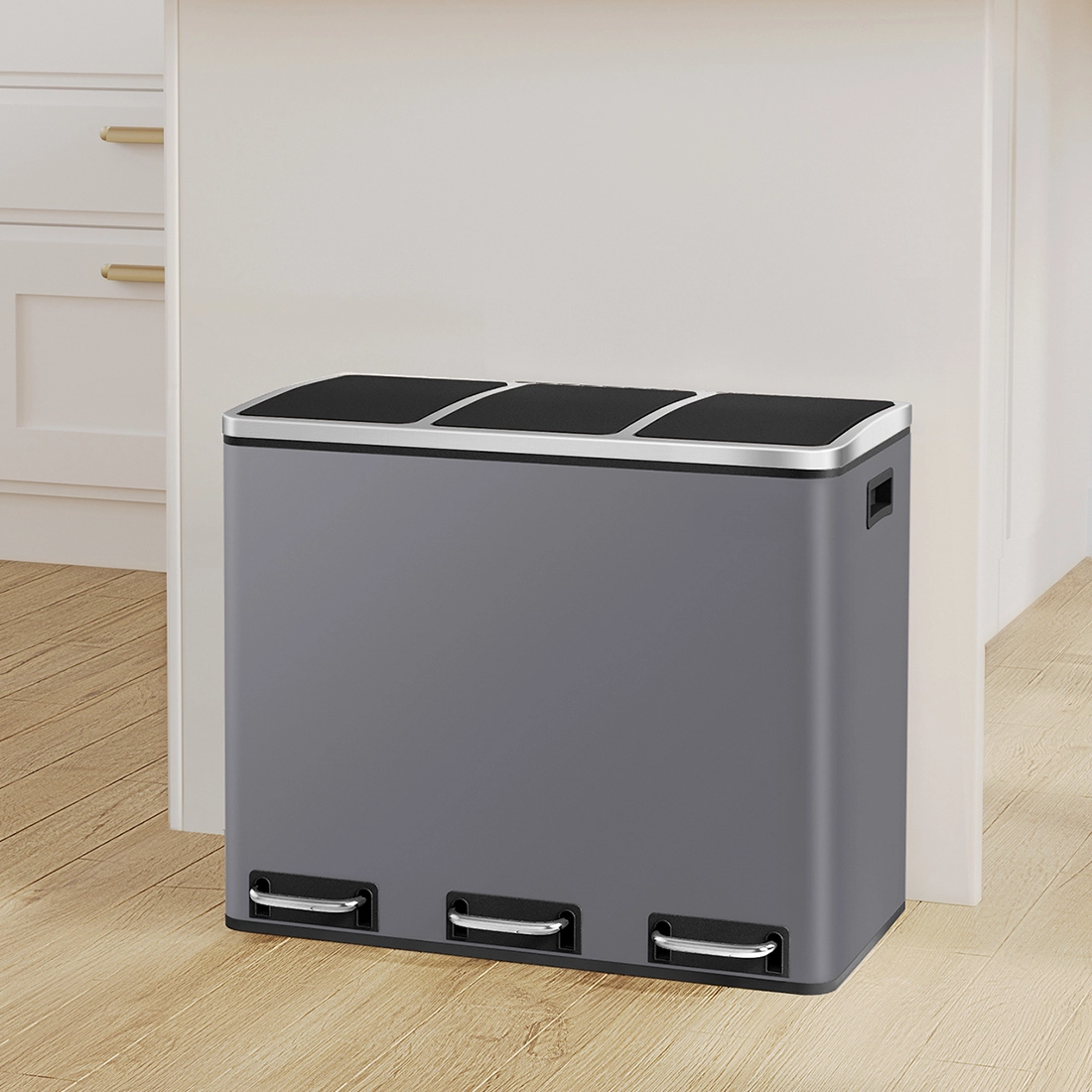 Kosz na śmieci z potrójną komorą Spacetronik SFFT0031_V8 z funkcją cichego domykania szary