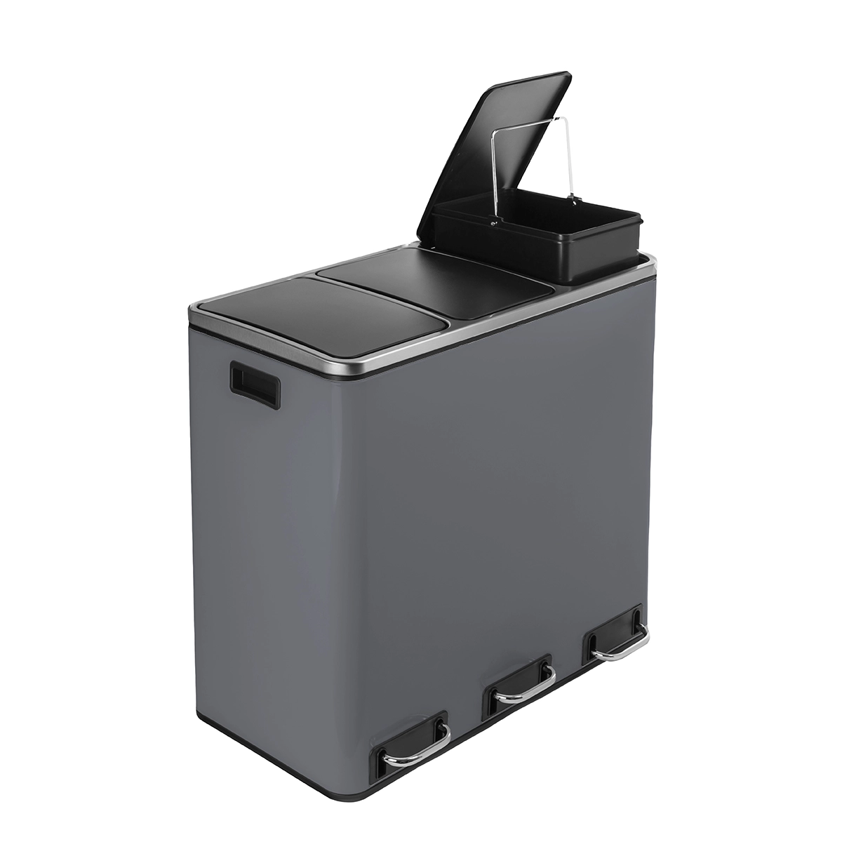 - Potrójna komora: Umożliwia łatwą segregację śmieci i recyklingu dzięki trzem oddzielnym pojemnikom.