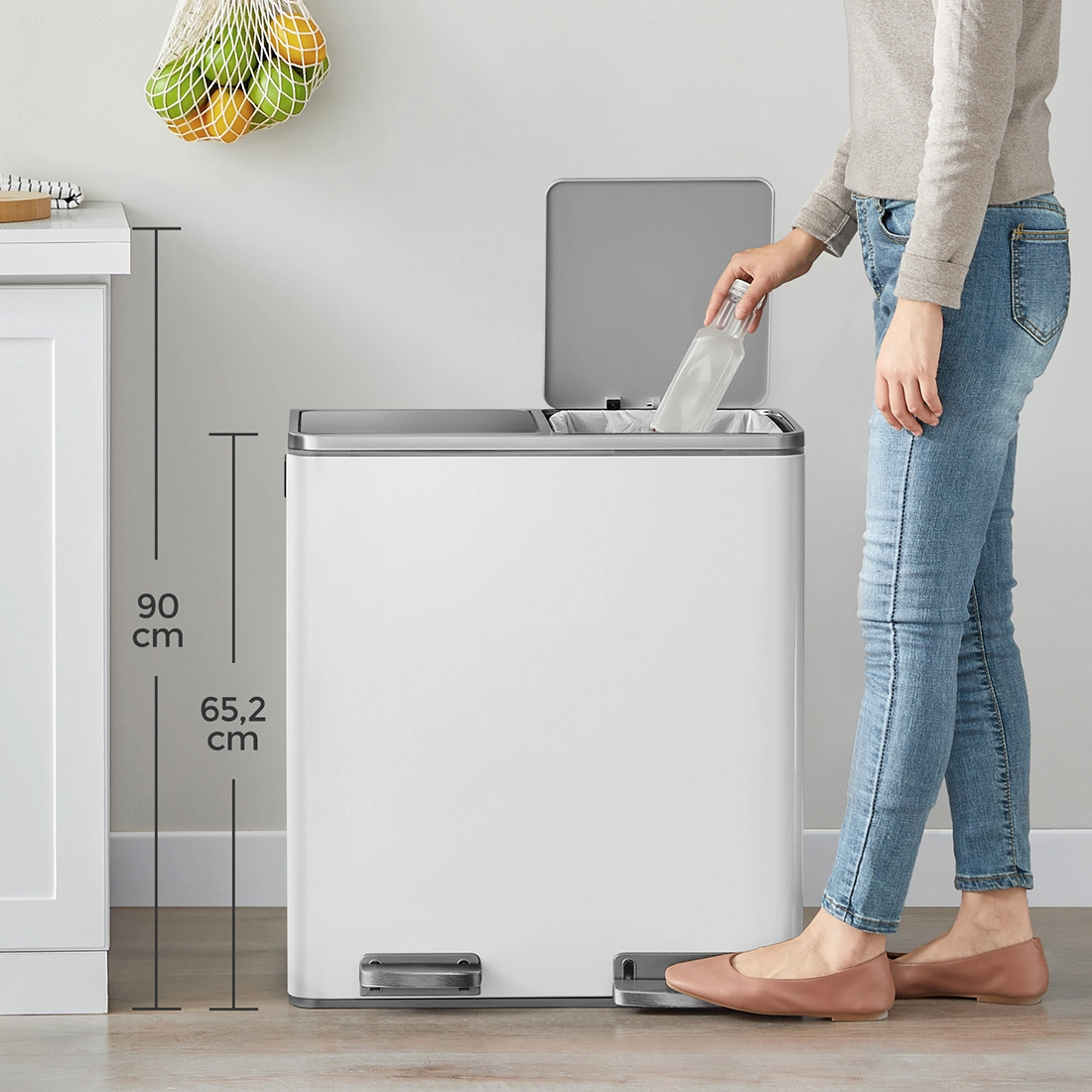 - Podwójna komora: Umożliwia łatwą segregację śmieci i recyklingu dzięki dwóm oddzielnym pojemnikom.
