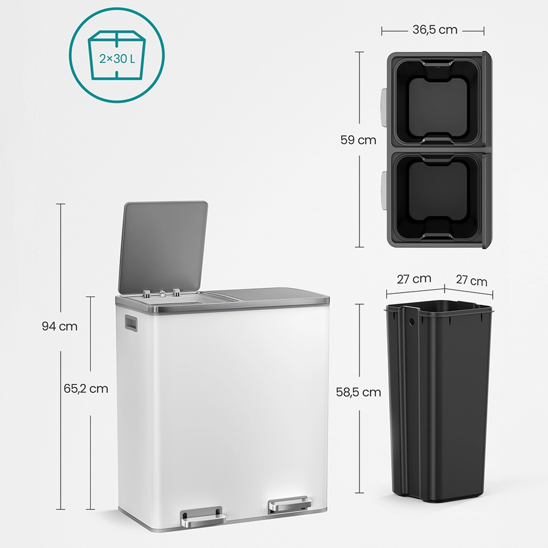 - 2x30L (łącznie 60L) - Materiał: