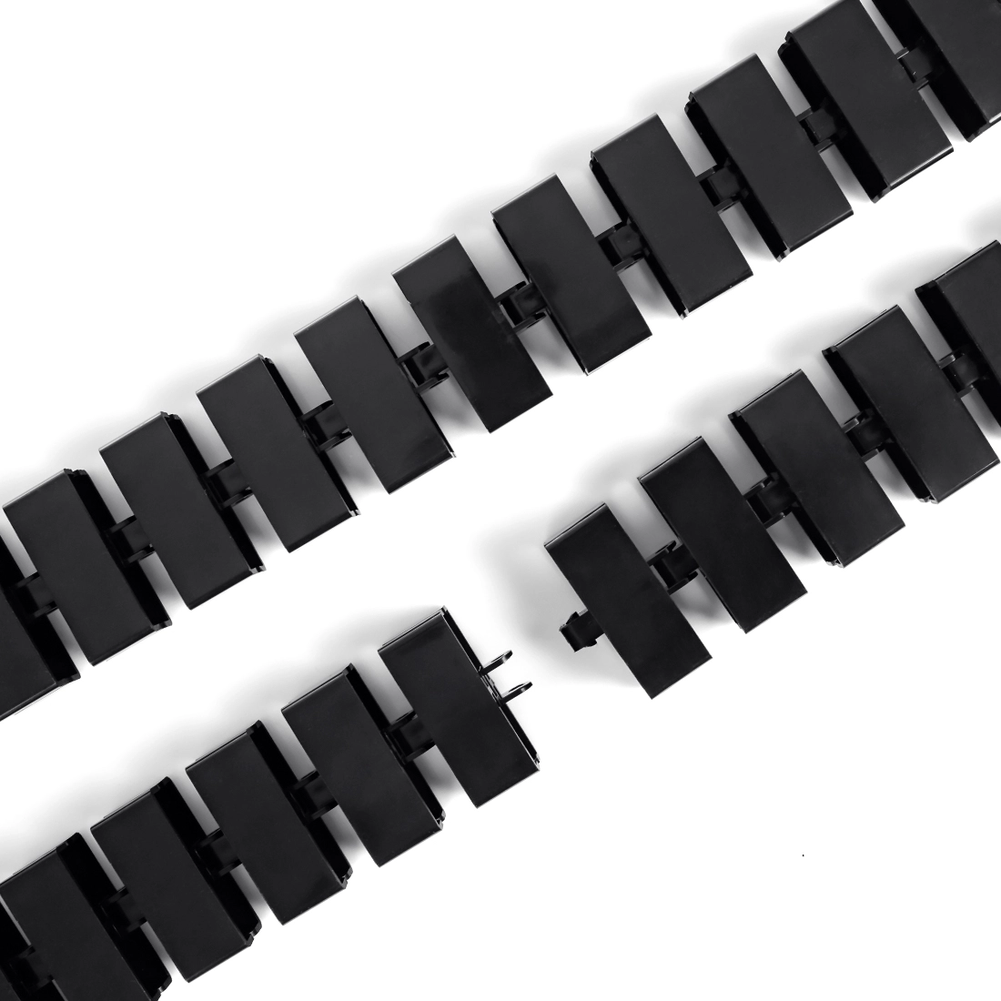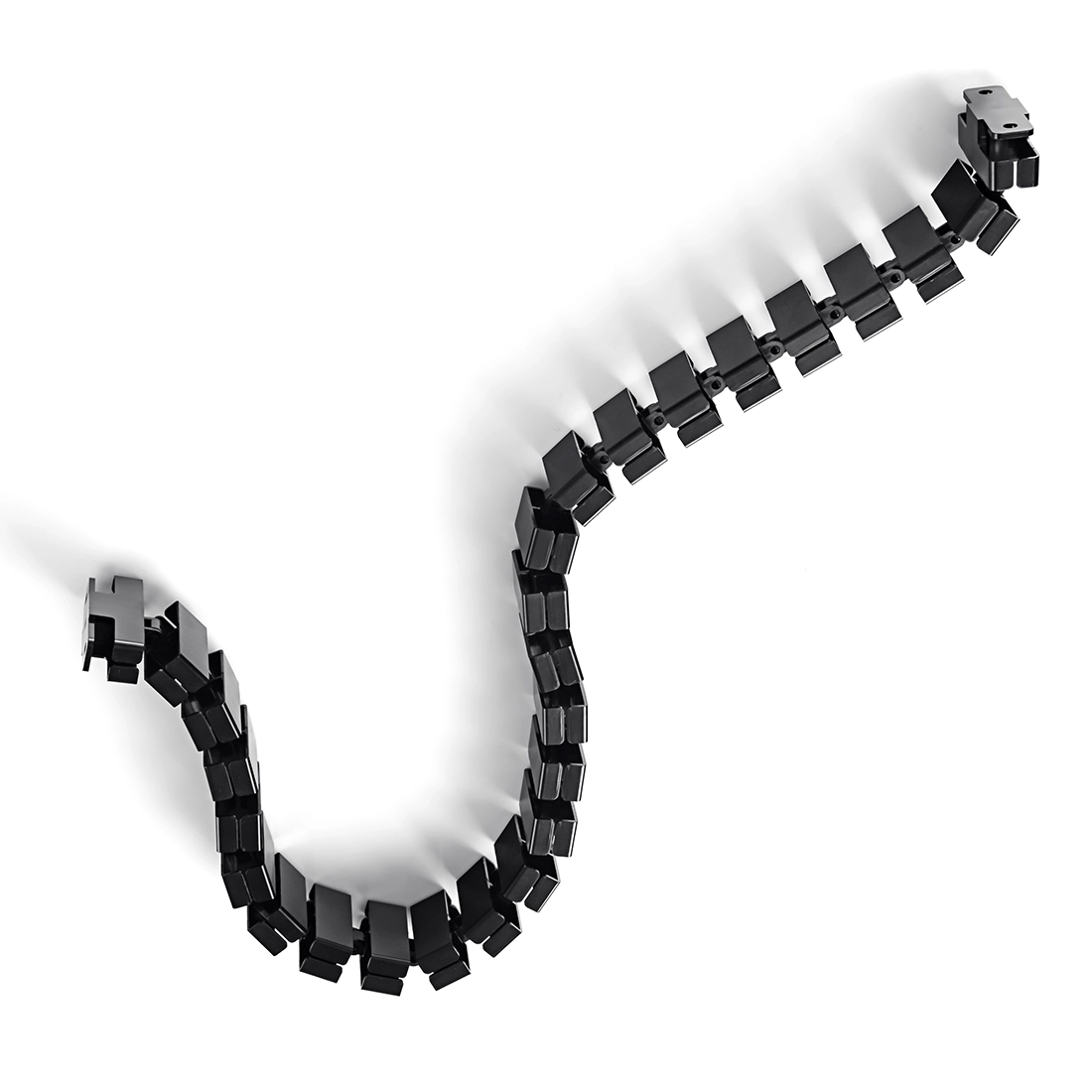 Zatrzaskowe bloki łączą się ze sobą dając łączną długość 118 cm. Prowadnica kablowa wyposażona jest po obu stronach w element zaczepowy posiadający otworu do montażu. Kręgosłup można dowolnie skracać lub wydłużać poprzez dodawanie/usuwanie bloków. Rozmiar pojedynczego bloku to 45 x 17 mm.