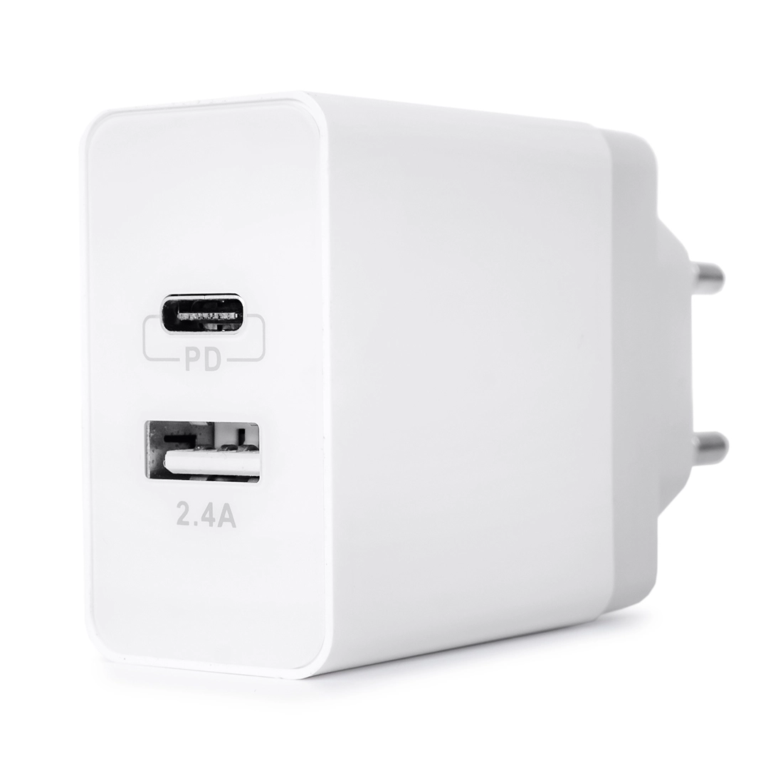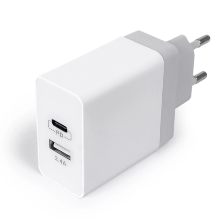 Ładowarka sieciowa z wyjściami USB i USB-C / PD. Pełna zgodność ze standardem USB-C fast charging. Zapewnia szybkie ładowanie z mocą 17W (aż do 4x szybciej niż tradycyjne ładowarki) na jednym wyjściu. Ochrona przed przeciążeniem i przepięciem. Wykorzystanie technologii fast charging jest efektywne tylko, gdy złącze w urządzeniu ładowanym to USB-C. Niewielkie rozmiary ładowarki i jej moc to świetne rozwiązanie w podróży. Dzięki temu można w szybkim czasie naładować smartphona lub inne urządznie.