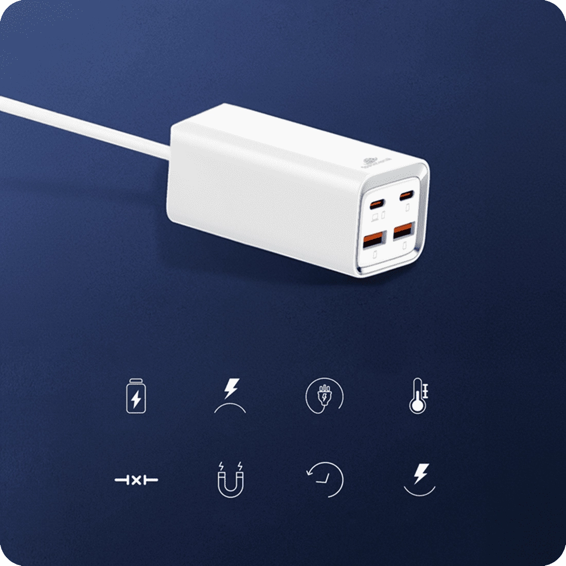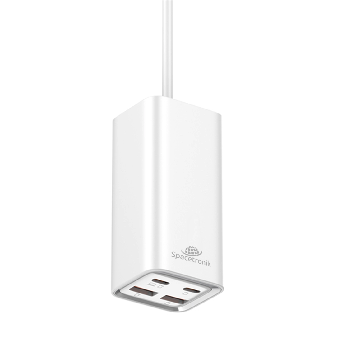 Myśląc o jednoczesnym ładowaniu 4 urządzeń za pomocą jednej ładowarki, możesz obawiać się o prędkość tego procesu. Ze Spacetronik SR102 wszystkie Twoje obawy znikną w mgnieniu oka! Ładowarka została wyposażona w 2 porty USB-C zapewniające moc 65 W. Dodatkowo posiada ona 2 porty USB-A QC3.0 gwarantujące moc 60 W. Są to wystarczająco silne wejścia, by naładować, chociażby Twojego laptopa. Standardowego smartfona naładujesz natomiast za pomocą tej ładowarki w około 30 minut. Dlatego też niezależnie od tego, jakie urządzenie chcesz naładować, nie będziesz musiał się obawiać, że będzie to trwało wieki.