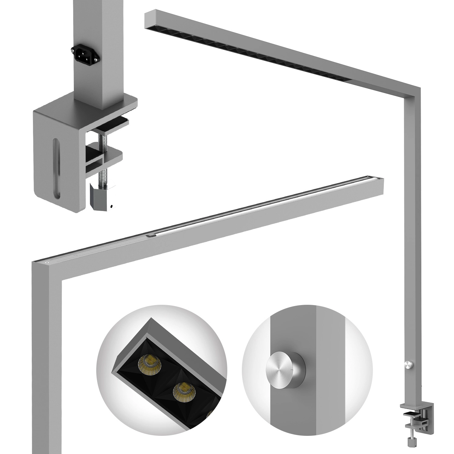 Aluminiowa konstrukcja łączy prostotę i trwałość. Smukła forma nie dominuje, tylko porządkuje wizualnie stanowisko, a neutralne wykończenie pasuje do większości biurek i ekranów. To estetyka, która wspiera profesjonalny charakter miejsca pracy. Gdy zależy Ci na spójności w całym biurze, identyczne lampy na uchwytach do blatu pomagają zachować jednolity, uporządkowany wygląd.