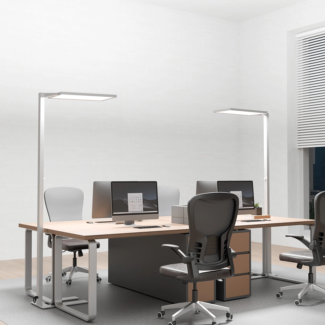 Dzięki stalowej podstawie w kształcie litery U i lekkiej konstrukcji z aluminium, lampę można łatwo przestawić w dowolne miejsce biura. Nie wymaga skomplikowanego montażu - wystarczy ustawić ją tam, gdzie światło jest potrzebne. To praktyczne rozwiązanie dla dynamicznych przestrzeni pracy, gdzie aranżacja często się zmienia.