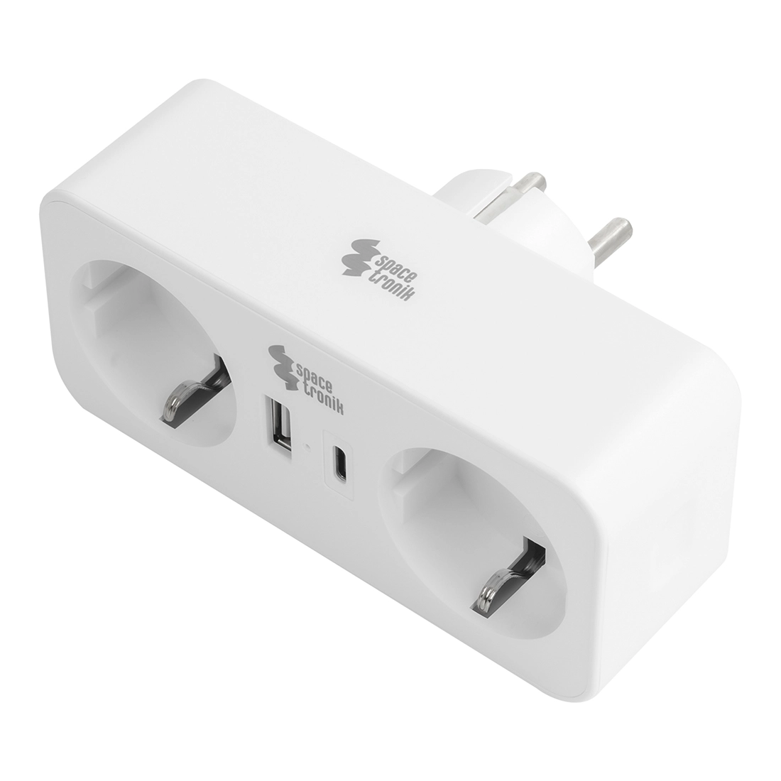 Adapter podróżny - gniazdo wtykowe Spacetronik SPSPS01W z portami USB i USB C do ładowania wielu urządzeń jednocześnie w kolorze Białym