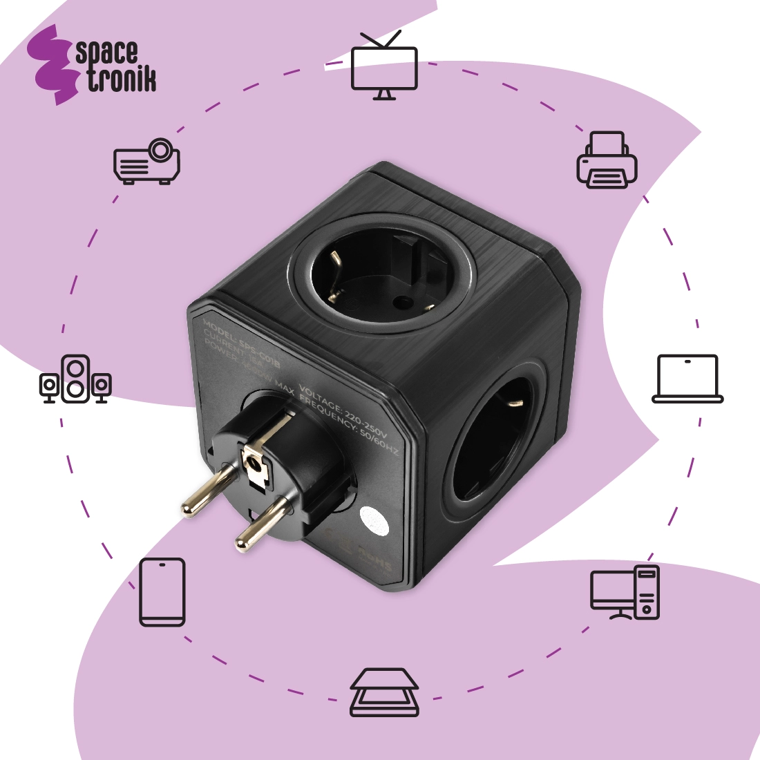 • Listwa zasilająca adapter Spacetronik SPSC01 to urządzenie 5 w 1. Została wyposażona w 5 gniazd AC. Posiada 4 systemy bezpieczeństwa w tym przeciwprzepięciowy. Moc maksymalna 4000W. Czarna. Łącz ją z innymi kostkami i stwórz swoją własną wieżę zasilania.