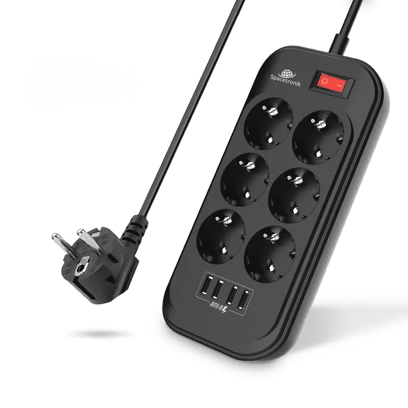 Chciałeś podłączyć jakieś urządzenie do kontaktu, ale nie miałeś wolnego żadnego gniazdkA Jest to sytuacja, która zapewne spotkała każdego z nas. Żyjemy w świecie prężnie rozwijającej się technologii. Dlatego też elektronika otacza nas z każdej strony. Z uwagi na to firma Spacetronik przygotowała rozwiązanie tego problemu. Listwa zasilająca SR-204 została wyposażona w aż 6 gniazd AC i 4 porty USB-A. Oznacza, że po podłączeniu listwy do jednego gniazdka, zyskasz możliwość ładowania, aż 10 urządzeń naraz! Problemy z brakiem gniazdek elektrycznych nie będą Cię już więcej trapiły.
