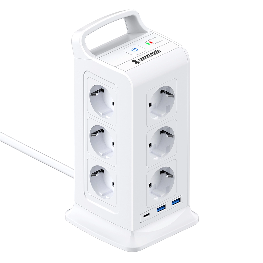 Rozgałęźnik pionowy Spacetronik SPSPS03W Biały – listwa elektryczna 12x Schuko, USB-A, USB-C, kabel 2M