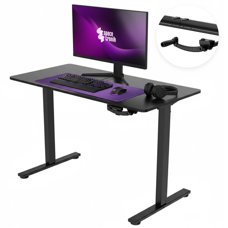 Spacetronik został wykonany z płyty wiórowej z dodatkiem melaminy, stali, i dobrej jakości tworzywa sztucznego. Takie połączenie materiałów sprawia, że biurko będzie odporne na uszkodzenia mechaniczne. Zapewnia również udźwig aż do 40 kg. Pozwoli Ci to w pełni wykorzystać wymiary biurka. Dodatkowo biurko wytrzyma, nawet najbardziej intensywną rozgrywkę w Twojej ulubionej grze multiplayer. Wytrzymała stalowa rama została pomalowana na matowy, czarny kolor. Dzięki temu idealnie wpasuje się do większości przestrzeni. Niezależnie czy będzie to pokój nastolatka, czy też domowe biuro.