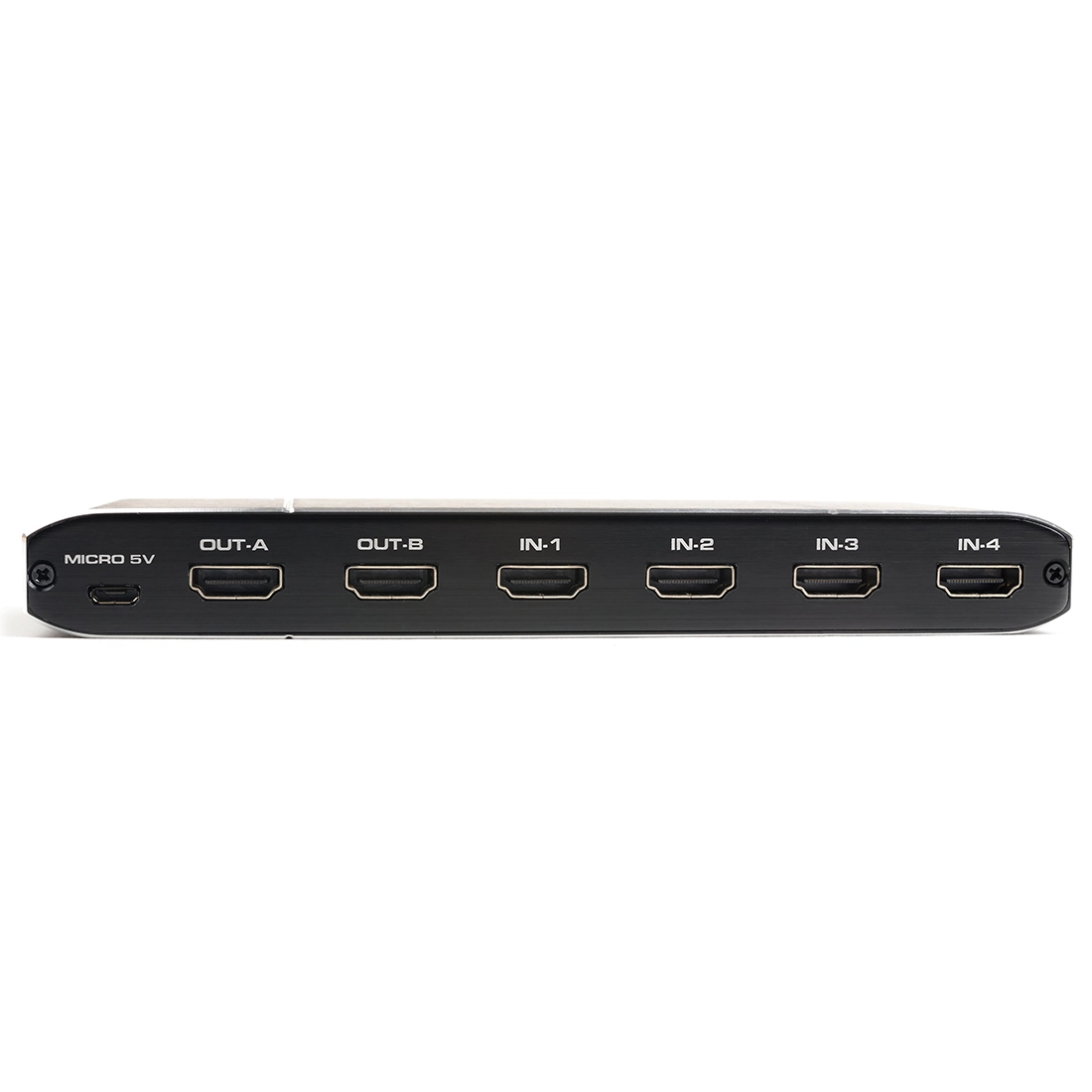 - 4 wejścia HDMI przełączają się i dzielą na 2 wyświetlacze HDMI.