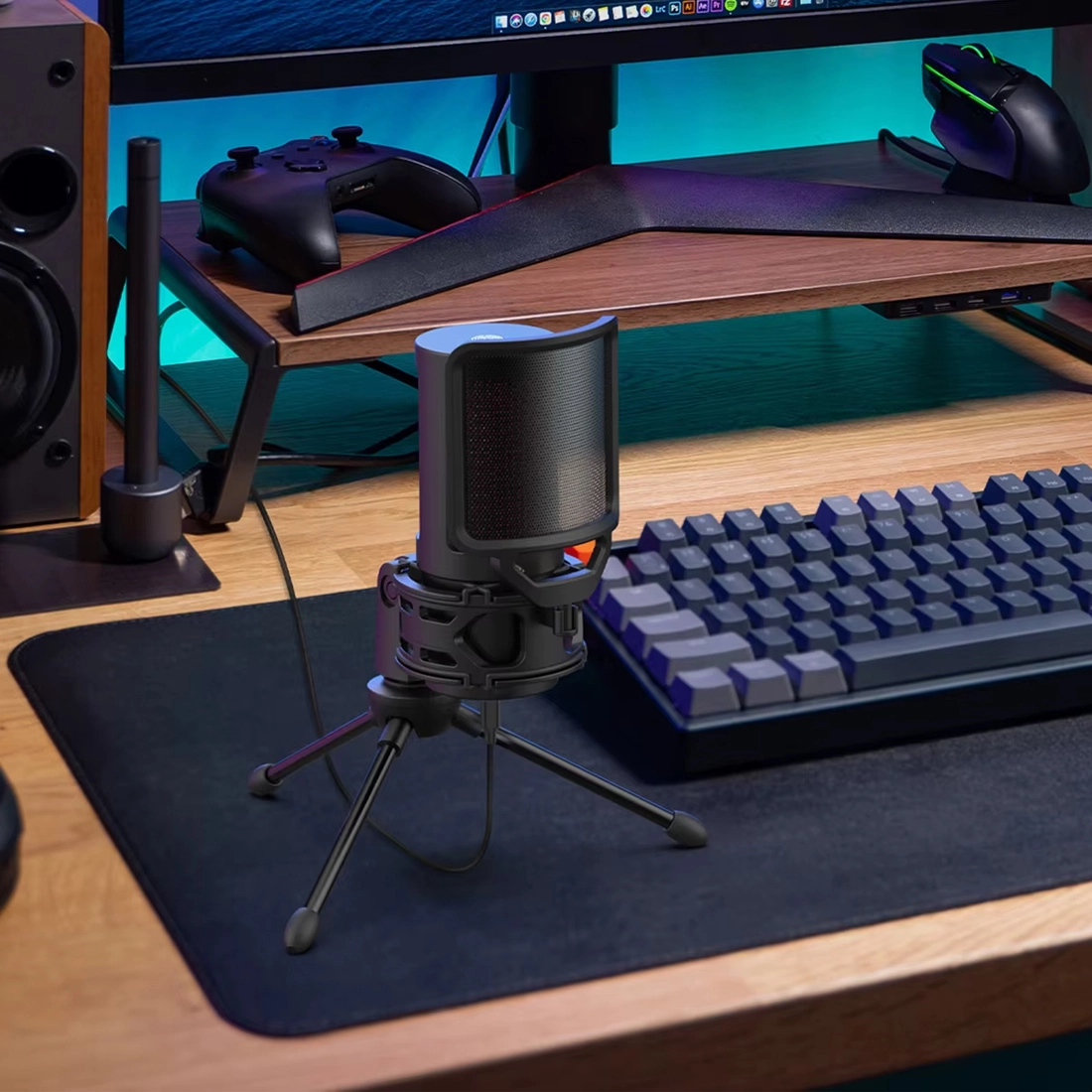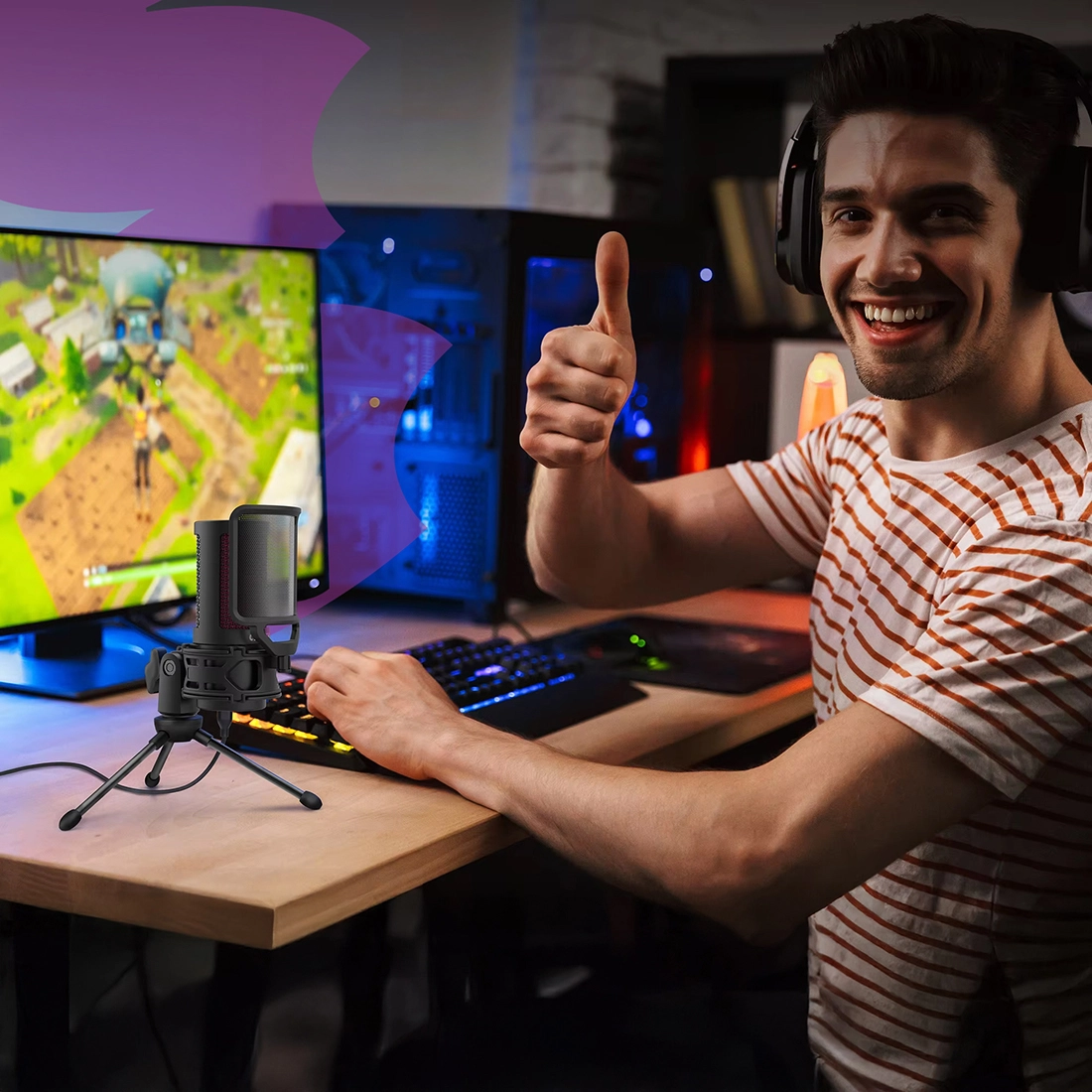 Technologia USB Plug & Play - Wbudowana karta dźwiękowa sprawia, że mikrofon działa natychmiast po podłączeniu do PC, Maca, PS4 lub PS5, bez konieczności instalowania sterowników.