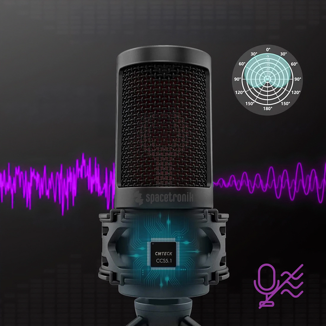 Mikrofon streamingowy Spacetronik SPU-WM40 – Czysty Dźwięk i Redukcja Szumów dla Graczy i Twórców