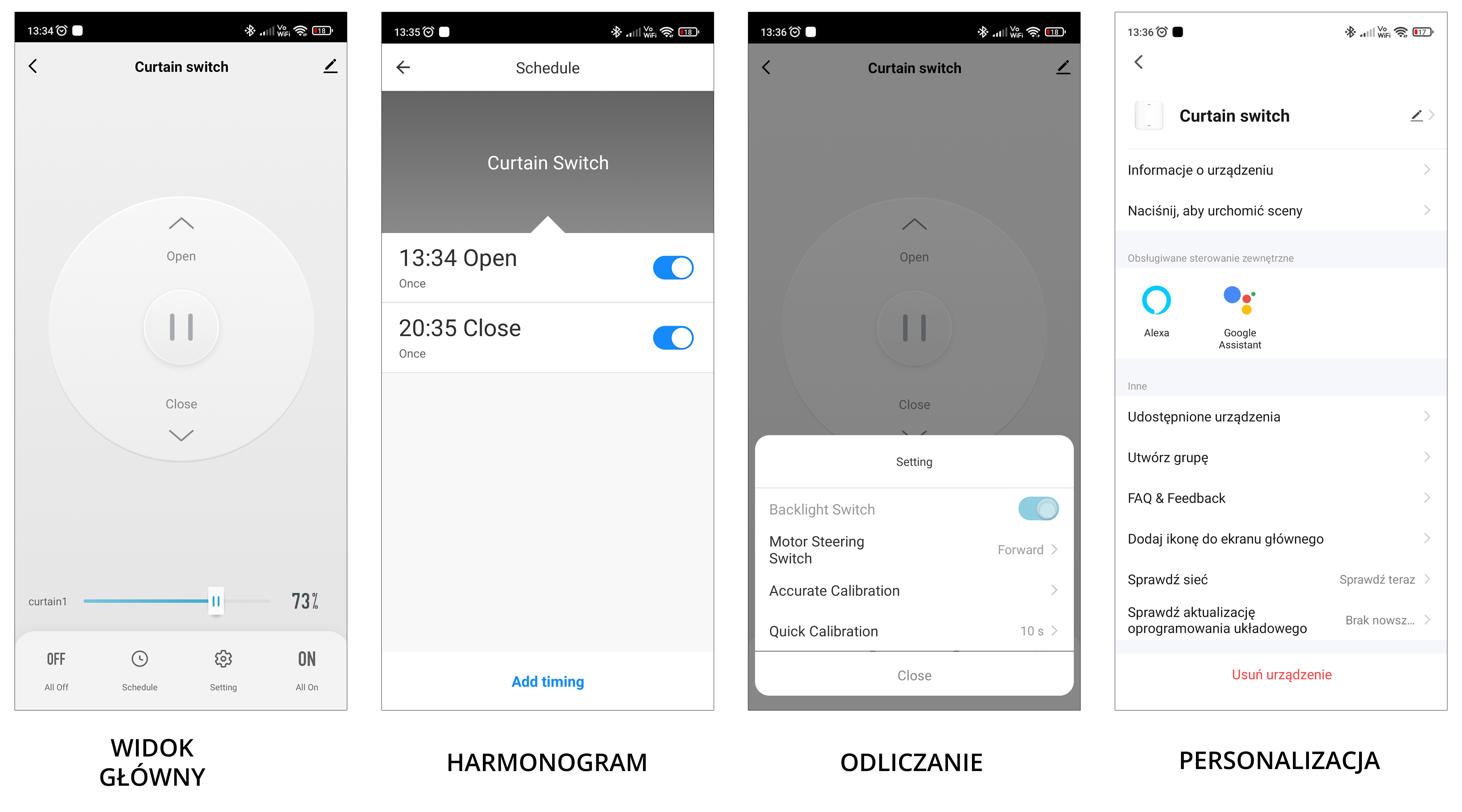 - Harmonogram- ustaw, w jakich godzinach rolety mają odsłaniać lub zasłaniać okna