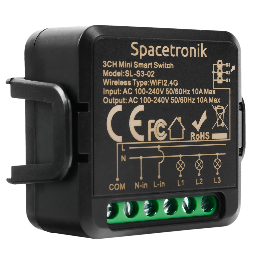 Mini switch dopuszkowy przekaźnik Wi-Fi Tuya Potrójny Spacetronik SL-S3-02