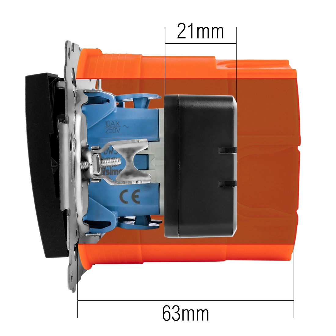 Switch światła WiFi ma małe wymiary 42 x 42 x 21 mm. Dzięki temu bez problemu zmieści się w każdej puszce i umożliwi zamontowanie klasycznego włącznika. To rozwiązanie umożliwia ulepszenie domu do wersji Smart bez większej ingerencji w istniejącą instalację.