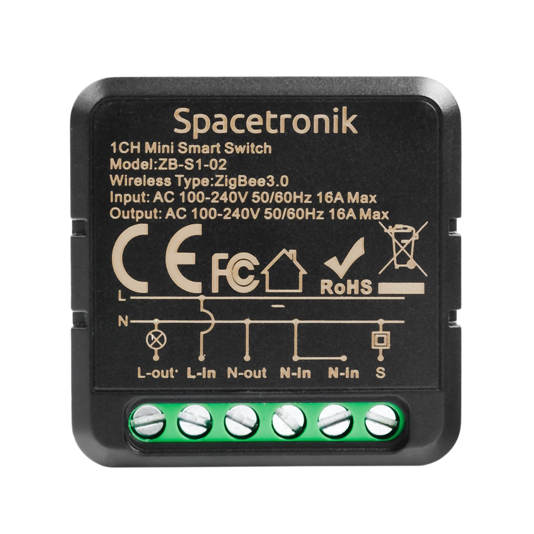 Mini switch dopuszkowy przekaźnik Zigbee Tuya Pojedynczy Spacetronik ZB-S1-02
