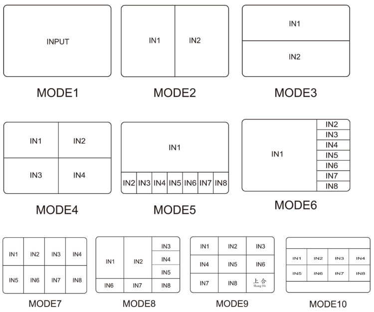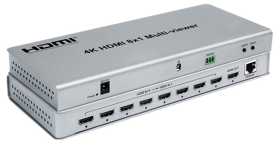 Urządzenie Multi-Viewer pozwala na wyświetlanie obrazu z ośmiu źródeł HDMI (1920x1080, 60FPS) na jednym ekranie. Obraz jest bezstratny, wyraźny i ma głębokie barwy. Jako urządzenie typu Multi-Viewer, pozwala wyświetlać obraz w dziesięciu konfiguracjach. Możliwośc sterowania za pomocą przycisków na urządzeniu lub zdalnie pilotem.