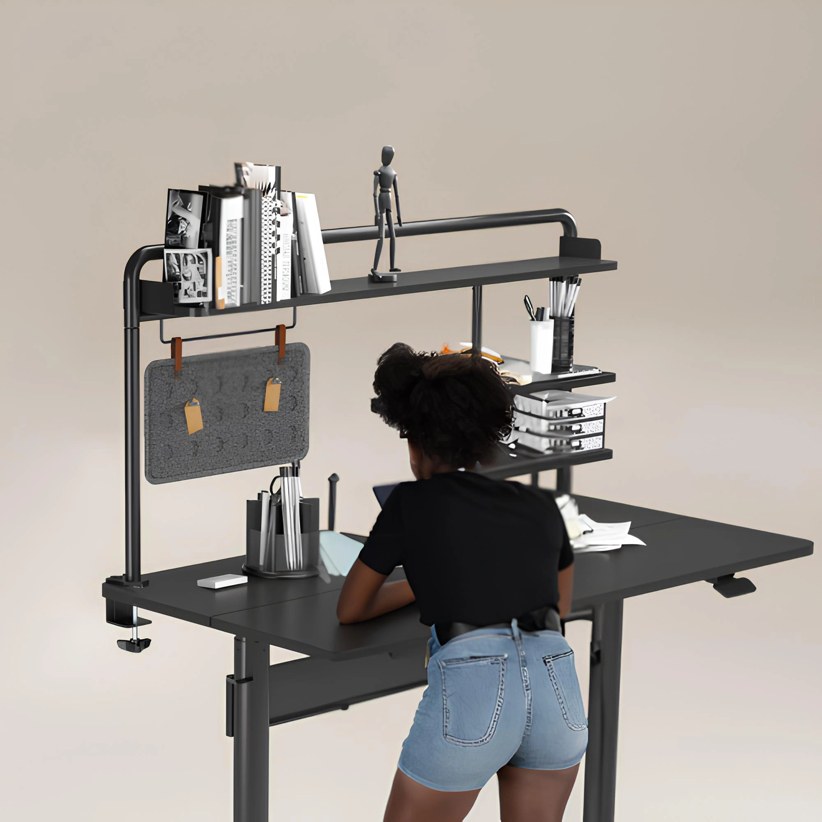 Spędzając długie godziny, siedząc przy biurku, powinniśmy zadbać o odpowiednią higienę pracy. Jednym z warunków, który musimy spełnić, jest zachowanie porządku przy swoim stanowisku. Czysty, dobrze zorganizowany blat wpłynie pozytywnie na nasze samopoczucie, a tym samym również na naszą produktywność. Na szczęście jesteś w stanie w bardzo prosty sposób to osiągnąć. Twoim kluczem do lepszej produktywności może okazać się organizer na biurko Spacetronik SPB-118BB. Dzięki uchwytom zaciskowym bez problemu zamontujesz go nad biurkiem. Tym samym zyskasz miejsce, które normalnie zajmowałyby Twoje przedmioty na blacie. Trzy pojemne półki pozwolą Ci na wypełnienie ich najpotrzebniejszymi przedmiotami biurowymi. Natomiast do magnetycznej tablicy przyczepisz notatki, by o niczym istotnym nie zapomnieć.