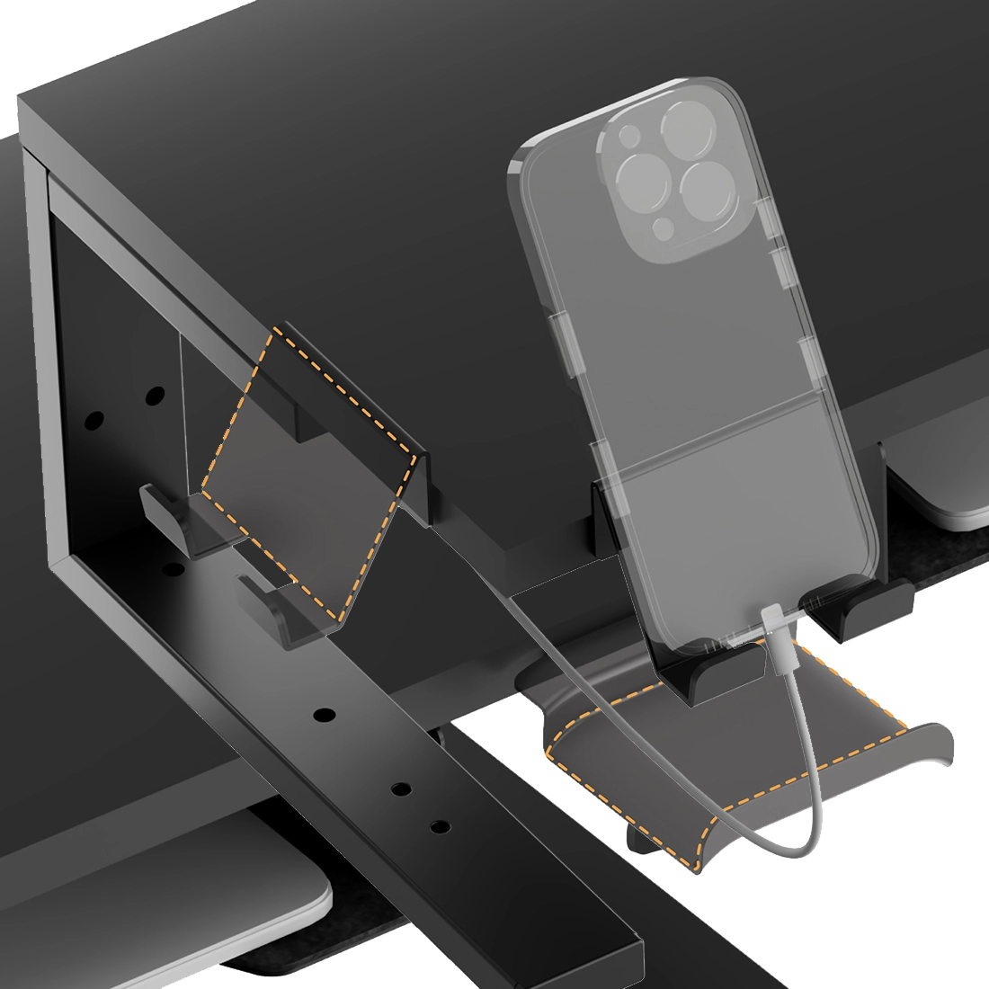 Funkcjonalne uchwyty i przegródki wbudowane w konstrukcję SPB117B_38 umożliwiają skuteczną organizację przestrzeni roboczej. Dzięki nim każdy przedmiot ma swoje miejsce – od długopisów, przez notatniki, po tablet czy telefon. To znaczne ułatwienie codziennej pracy, które zwiększa produktywność i ogranicza bałagan na blacie. Dodatkowa przestrzeń pod półką może być wykorzystana na klawiaturę lub inne akcesoria, co pozwala zaoszczędzić miejsce i zachować porządek.