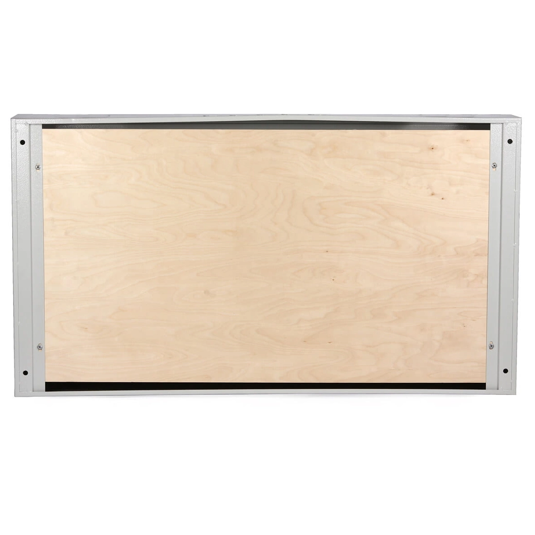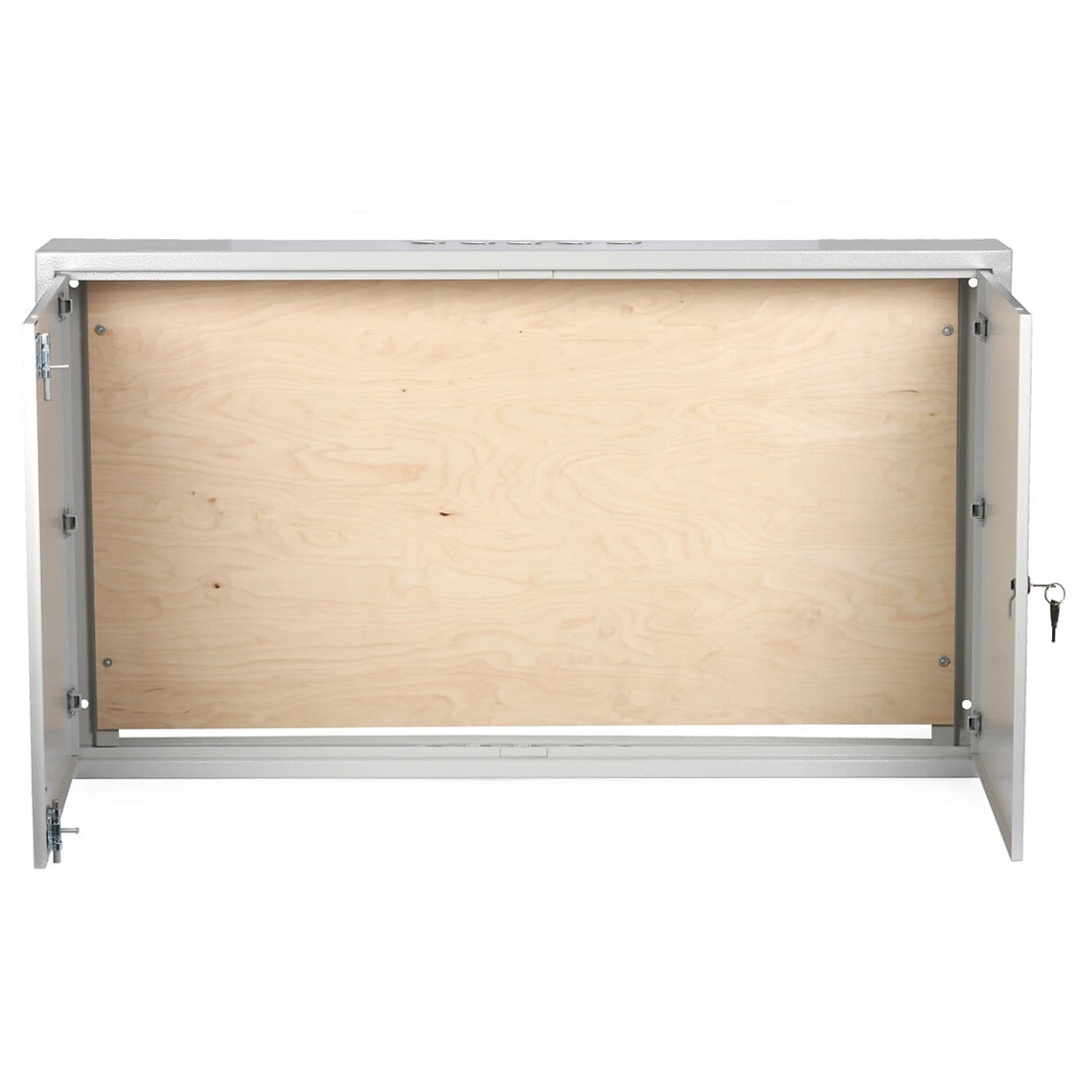 Szafka wykonana bez widocznych spawów (gładki front i boki szafki). Do zestawu dołączamy płytę montażową - solidny panel wykonany z wodoodpornej sklejki o grubości 6 mm. Montaż dodatkowej ścianki ze sklejki, zdecydowanie ułatwia dowolne zagospodarowanie wewnętrznej przestrzeni obudowy i zapewnia wygodną instalację urządzeń.