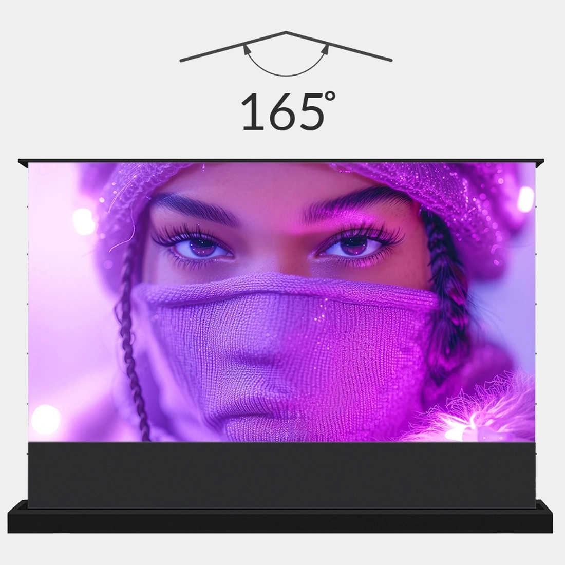 Gdziekolwiek usiądziesz, obraz pozostaje czytelny i kontrastowy. PRS-GE01 oferuje kąt widzenia 165°, co pozwala wygodnie oglądać seans większej grupie bez konieczności ustawiania krzeseł idealnie na wprost. Jednolita powierzchnia minimalizuje spadek jasności na brzegach, dzięki czemu kolory i detale pozostają stabilne. To świetny wybór do salonu, sali szkoleniowej lub strefy eventowej, gdzie liczy się komfort widza i swoboda aranżacji miejsc.