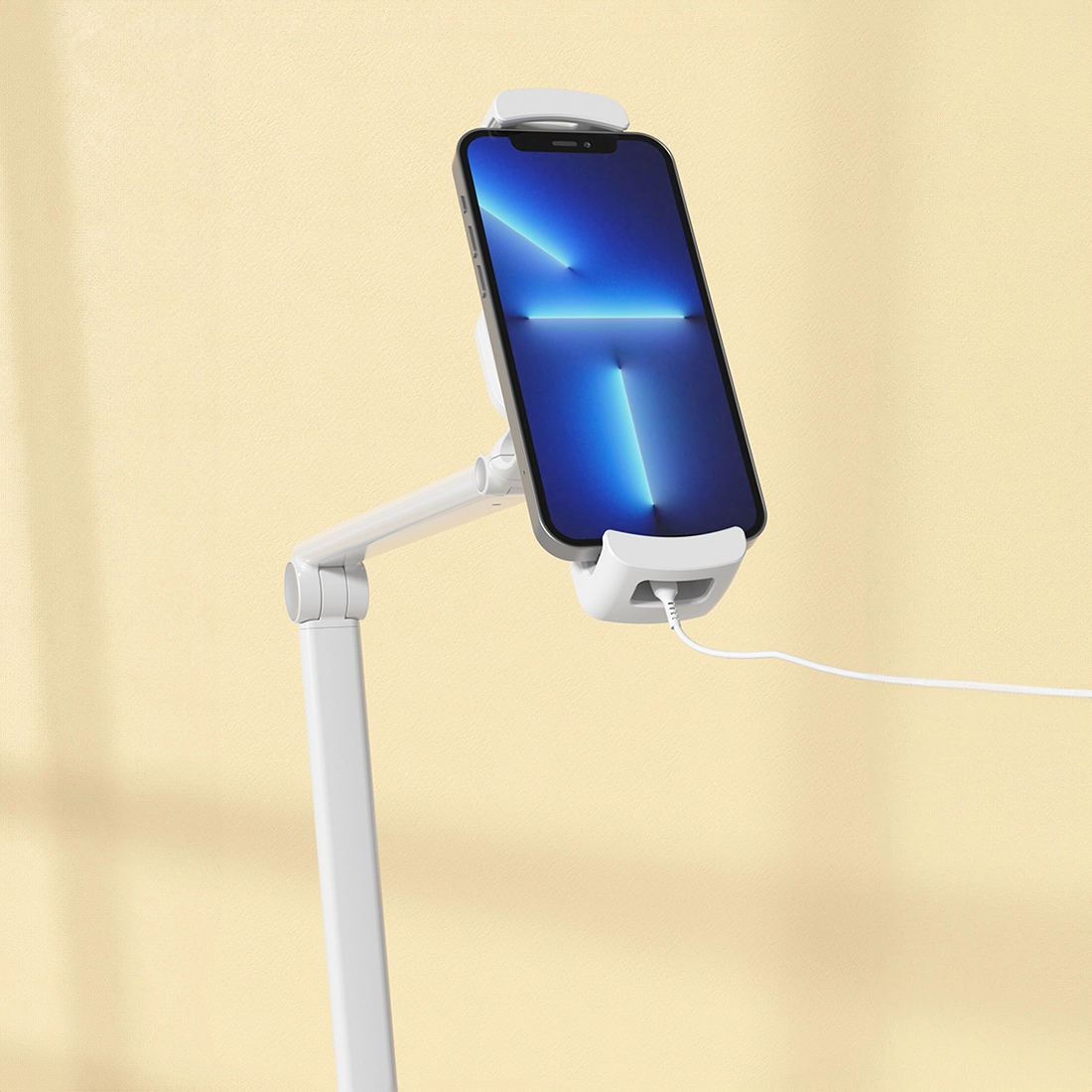 Ramię uchwytu zostało zaprojektowane z myślą o maksymalnej elastyczności. Pełna rotacja w poziomie i pionie pozwala na ustawienie tabletu w idealnym kącie widzenia – niezależnie od tego, czy leżysz, siedzisz, czy ćwiczysz. Idealne do pracy, relaksu i treningu.