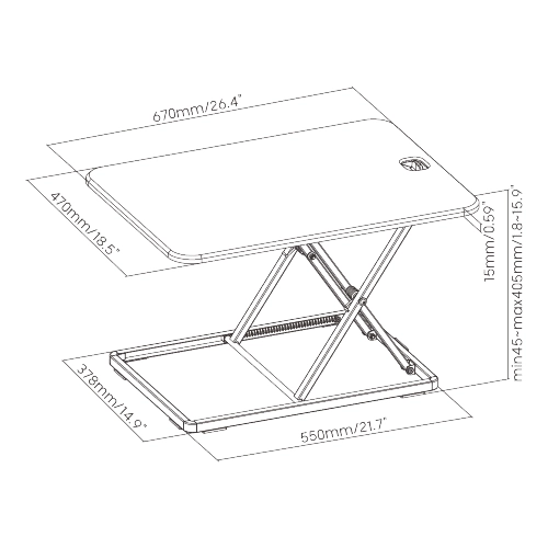 Nadstawka na biurko SPR-212MB cechuje się ultra cienką budową. Grubość po złożeniu wynosi tylko 45 mm. Z tego 15 mm to sam blat nadstawki. Dzięki temu, gdy nie korzystasz z nadstawki, nie będzie ona przesadnie rzucała się w oczy. Jej stylowy wygląd sprawi, że nie będziesz musiał wybierać pomiędzy komfortem pracy a wyglądem Twojego pokoju.