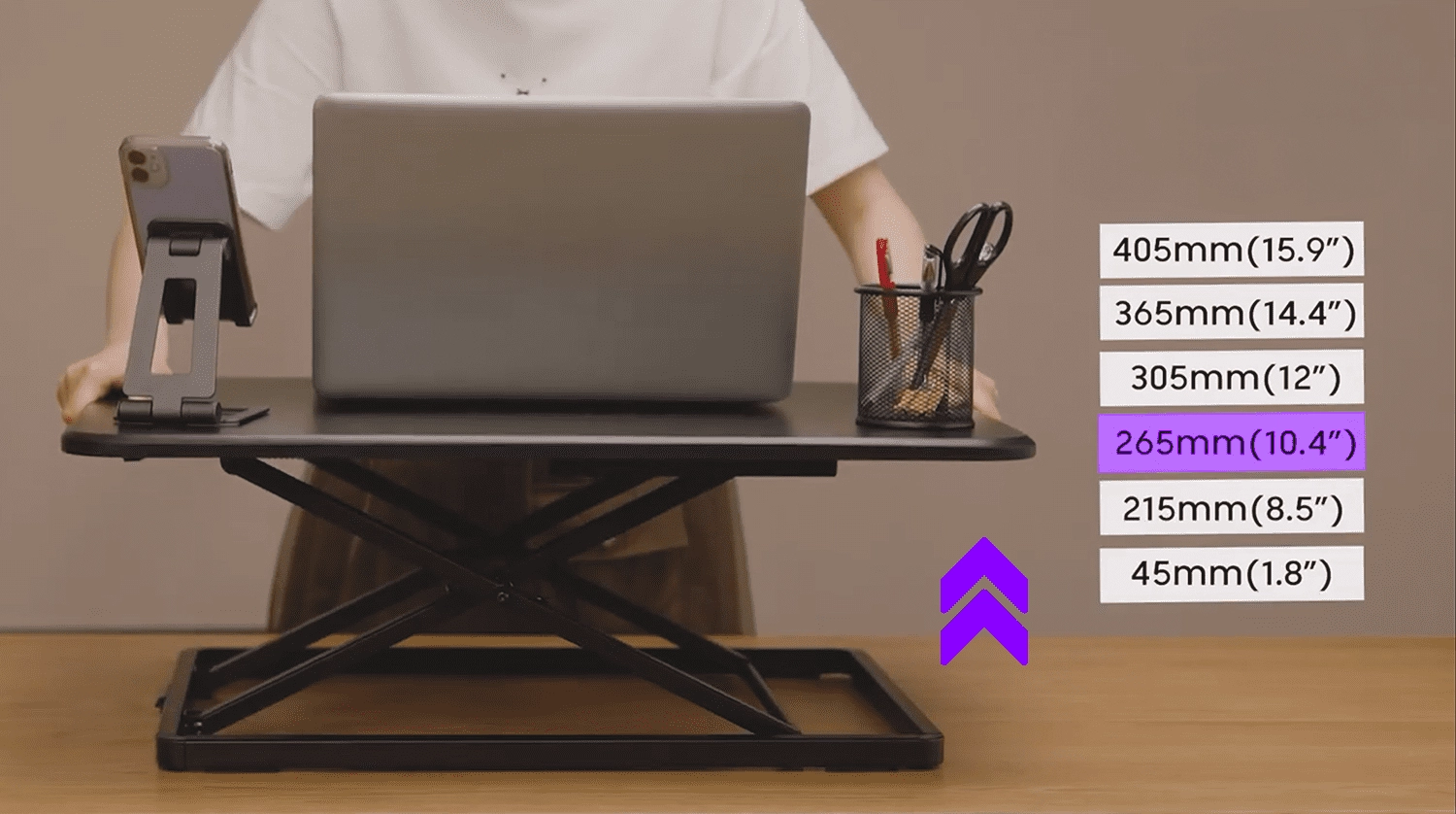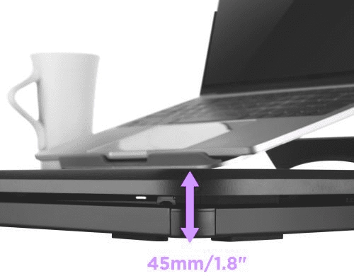 W trosce o Twoje zdrowie i wygodę podstawka pod laptopa została wyposażona w 6 poziomów wysokości. Dzięki temu ustawisz ją pod swój własny wzrost. Poziomy wysokości, w które została wyposażona nadstawka na biurko to: