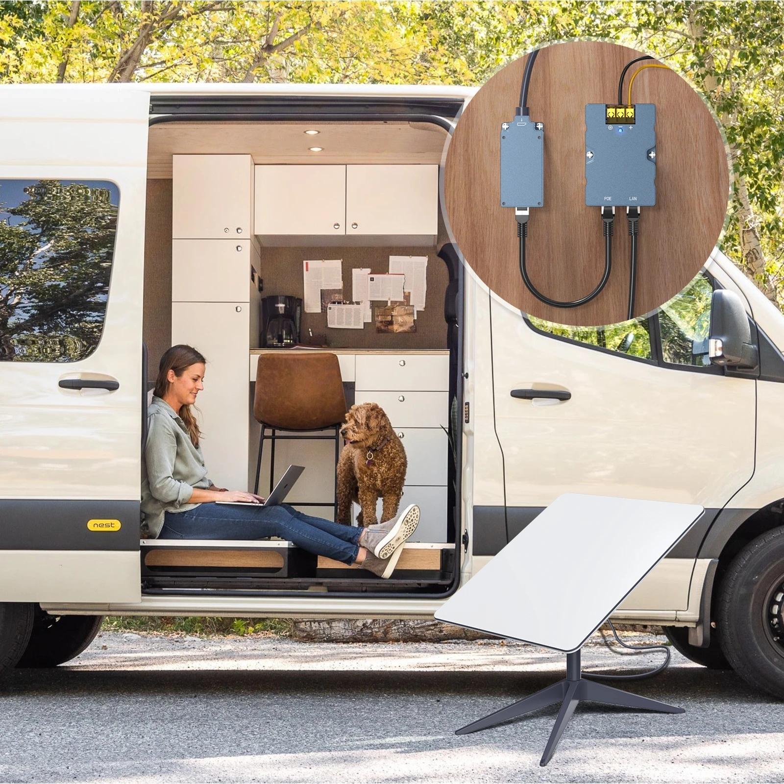 Spacetronik SP-LC34 adapter POE to urządzenie umożliwiające podłączenie przewodowej sieci Ethernet do systemu Starlink. Dzięki niemu można wykorzystać połączenie internetowe Starlink w urządzeniach, które wymagają przewodowego połączenia przez port RJ-45 (Ethernet), takich jak routery, komputery czy urządzenia sieciowe. Zestaw współpracuje z antenami Starlink High performance, Flat high performance.