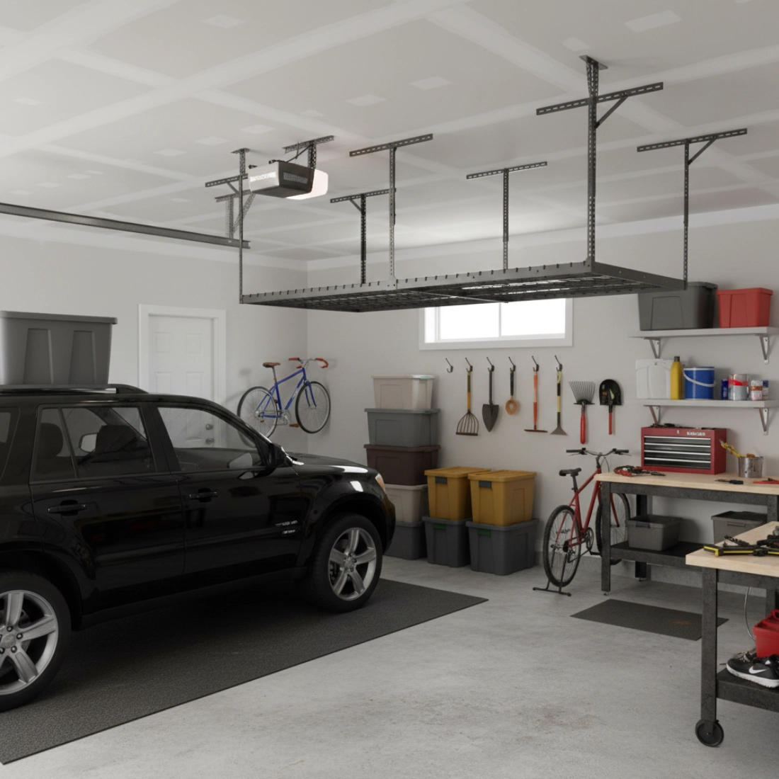 Ograniczona przestrzeń podłogowa w garażu nie musi oznaczać wiecznego bałaganu. Półka garażowa sufitowa Spacetronik SPG-102 o wymiarach 244 x 92 cm pozwala przenieść ciężkie i gabarytowe przedmioty pod sufit. Solidna stalowa konstrukcja o nośności 450 kg tworzy dodatkową powierzchnię magazynową nad miejscem parkingowym lub roboczym, pomagając odzyskać porządek i pełną funkcjonalność garażu, warsztatu czy magazynu.