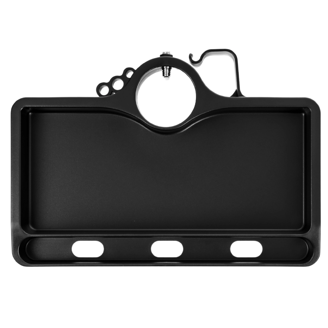 Powierzchnia użytkowa 19 × 10,5 cm idealnie sprawdza się na małe akcesoria: powerbank, dysk zewnętrzny, hub USB, telefon czy mały głośnik. Montaż na kolumnie uchwytu do monitora / stelaża pozwala uwolnić blat roboczy i lepiej zagospodarować przestrzeń przy stanowisku komputerowym, w home office lub biurze.