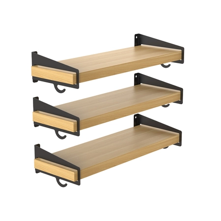 • Zestaw trzech loftowych półek do powieszenia na ścianę Spacetronik. Dekor klon, mocowanie stalowe. Dodatkowe haczyki. Rozmiar pojedynczej półki: 45 x 17 x 2,5 cm. Nośność do 20 kg.