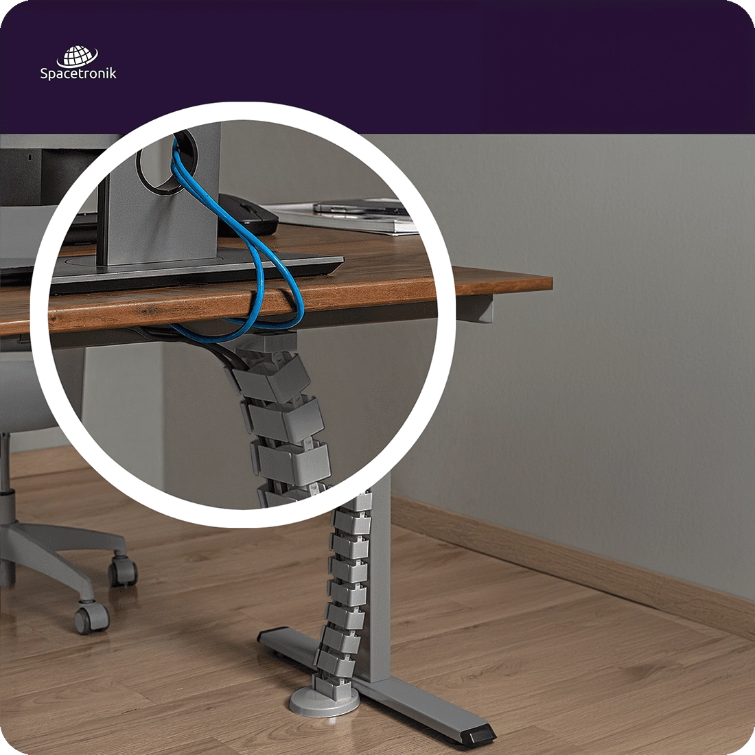 Atrakcyjny i praktyczny sposób na utrzymanie porządku w okablowaniu. Kręgosłup prowadzi kable od podłogi, ściany lub zespołu gniazd do biurka i zapewnia ochronę przed potencjalnymi uszkodzeniami mechanicznymi.