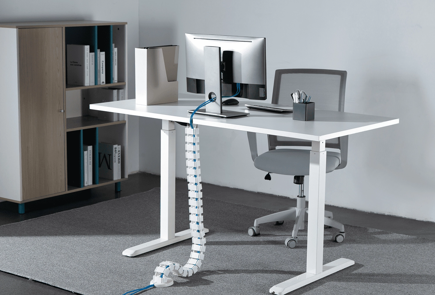 Organizer na kable SPK-180 ma możliwości zginania. Dopasujesz go do różnego rodzaju biurek. Również do biurek z regulacją wysokości. Wystarczy tylko, że przymocujesz go za pomocą śrub do blatu. Organizer sam będzie dostosowywał swoją wysokość razem z nim, zginając się lub prostując. Jest to, więc idealne rozwiązanie do stosowania razem z biurkami elektrycznymi.