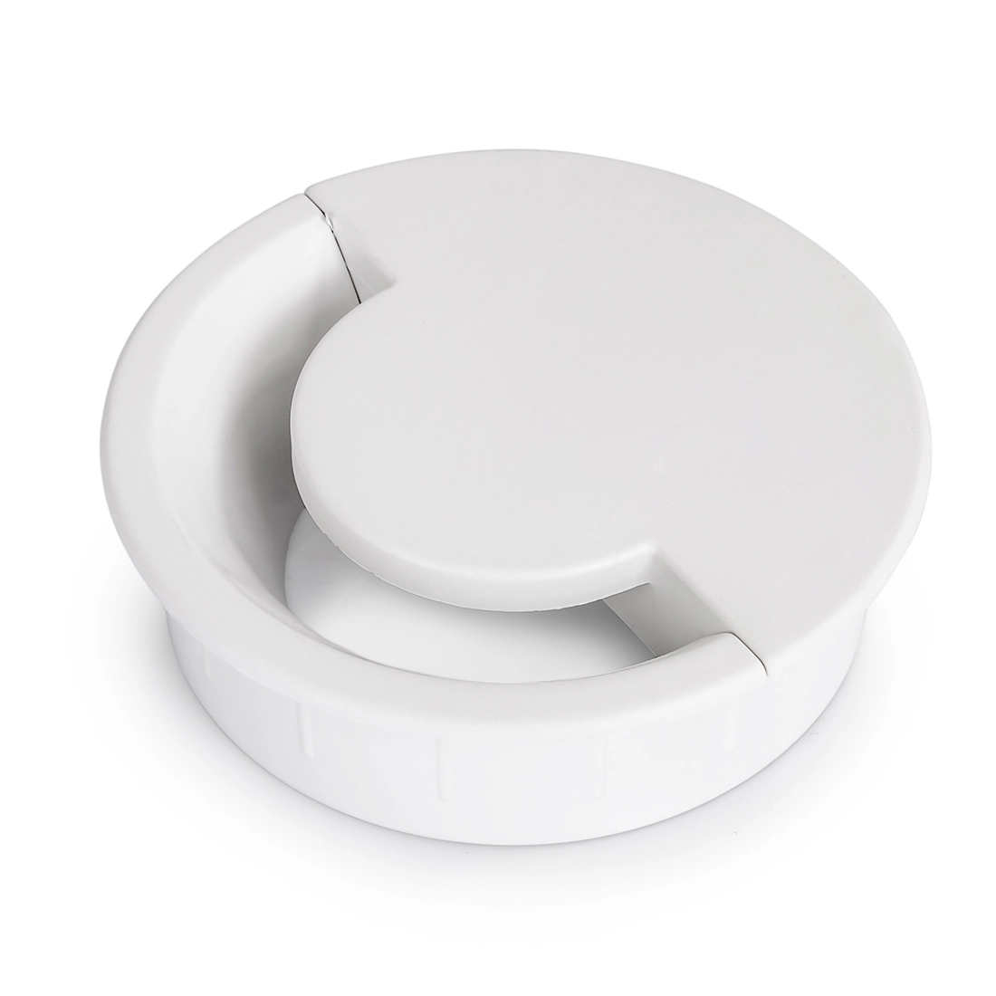 Przepust kablowy meblowy Spacetronik, który idealnie nadaje się do przeprowadzenia wszelkich kabli podłączonych do PC lub innych urządzeń przez blat biurka, stołu i innych mebli. Skutecznie porządkuje kable i zapobiega niepożądanym przetarciom izolacji przewodów przez ostre krawędzie mebli. Wykonany z plastiku, w kolorze białym.