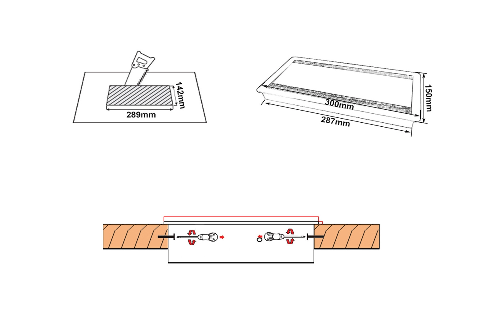 - Sugerowany wymiar otworu: 140 mm x 287 mm