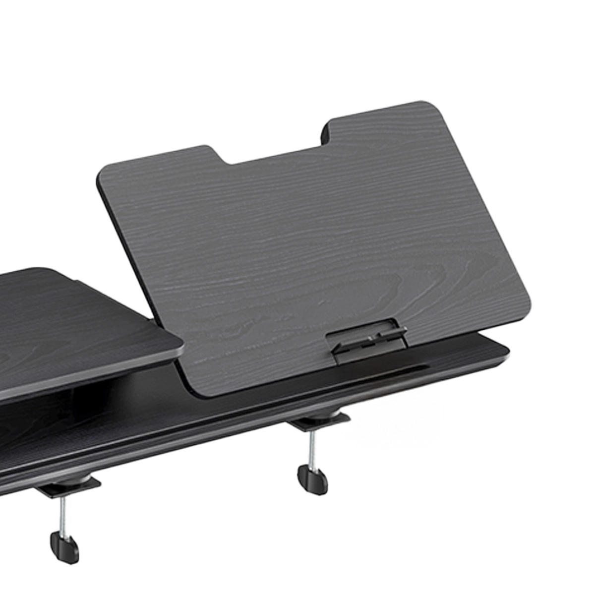 Ciesz się w pełni wszystkimi zaletami, jakie zapewnia Ci półka Spacetronik HUGEL 13. Wszystko dzięki tym małym detalom, w które została ona wyposażona. Na regulowanej części znajduje się specjalna blokada. Sprawi ona, że po ustawieniu kąta 55° położony na niej przedmiot (książka, laptop, tablet) nie spadnie na ziemię. Dzięki temu możesz ustawić ją idealnie, tak jak chcesz. Co więcej, dolna półka została wyposażona w wygodną, uniwersalną rynienkę. Będziesz mógł w niej trzymać zarówno swój telefon, jak i tablet. Trzymaj je zawsze pod ręką i to w taki sposób, żeby cały czas widzieć ich ekran. Dzięki temu Twoja przestrzeń do pracy stanie się jeszcze bardziej wielofunkcyjna. W tym samym momencie będziesz mógł wyświetlać potrzebne Ci informacje na monitorze, laptopie, tablecie i telefonie. Twoje biurko zamieni się w profesjonalne wielofunkcyjne miejsce pracy z dużą przestrzenią do przechowywania.