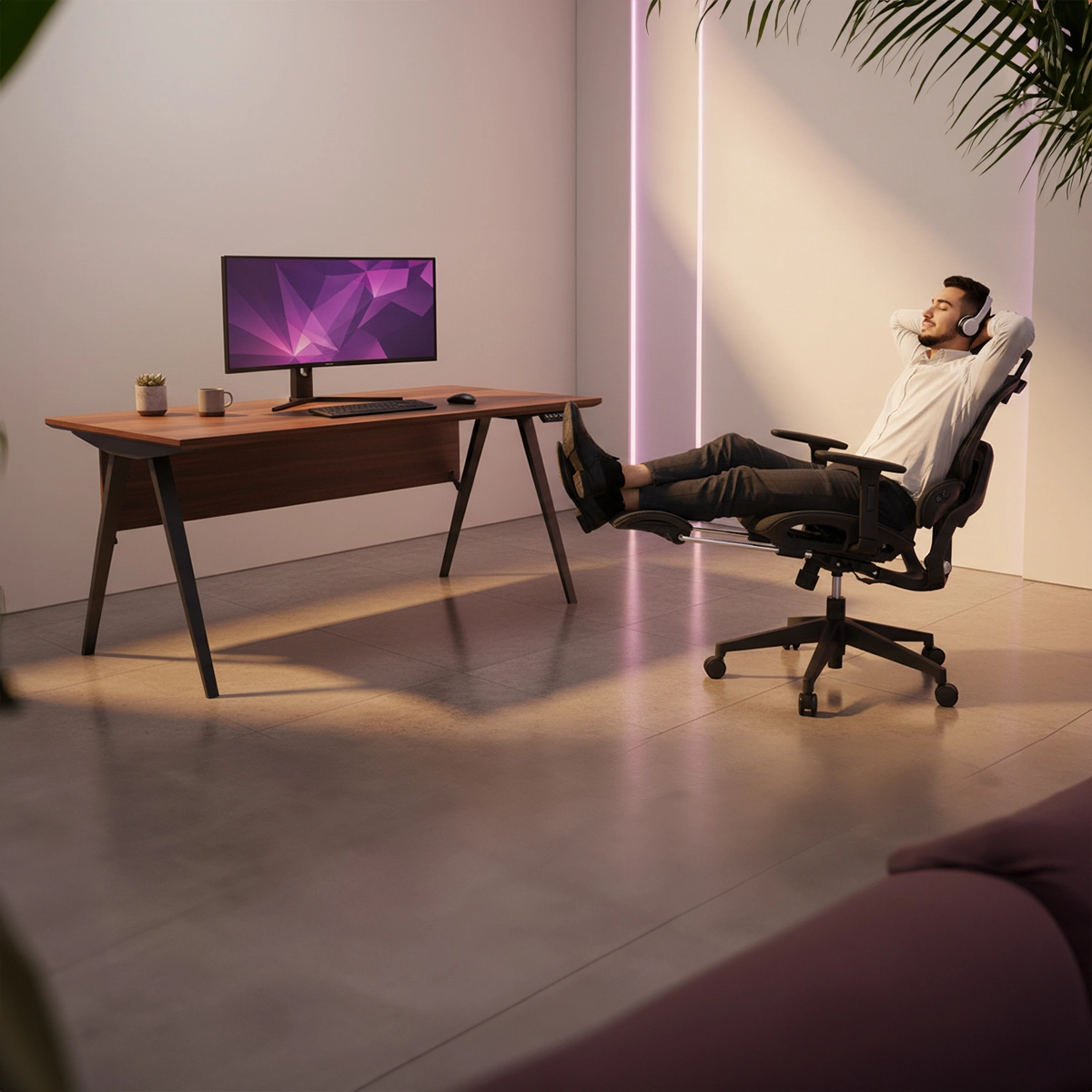 Każdy z nas od czasu do czasu potrzebuje przerwy, rozciągnięcia się i wyprostowania kości. Nikt nie jest w stanie pracować bez przerwy. Dlatego też dbając o Twoje potrzeby, fotel biurowy Spacetronik DORIS 20 został wyposażony w możliwość pochyłu oparcia do 155° i wysuwany podnóżek, który w każdym momencie możesz wysunąć, by rozprostować nogi. Sprawia to, że w każdym momencie dnia i nocy w bardzo łatwy sposób będziesz mógł położyć się w fotelu. Jest to idealne rozwiązanie, by móc chwilę odpocząć, nie opuszczając przy tym swojego stanowiska pracy. Dla niektórych może to również okazać się awaryjną opcją do spania - Pozwól sobie na krótkie drzemki.