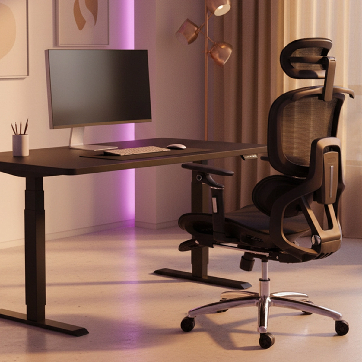 Fotel do biura Spacetronik DORIS 20 w swojej budowie zawiera wiele elementów, które możesz swobodnie regulować. Zagłówek 4D, podłokietniki 6D czy też wysuwany podnóżek. Do tego możliwość regulacji wysokości oparcia (składającego się z 2 części) i siedziska. Jednak to nie wszystko. Ustawić możesz również głębokość siedziska, a o Twoje plecy zadba również automatyczna poduszka lędźwiowa. Wszystko po to, by zapewnić Ci jak najbardziej komfortowe doświadczenie podczas długich godzin przed biurkiem.
