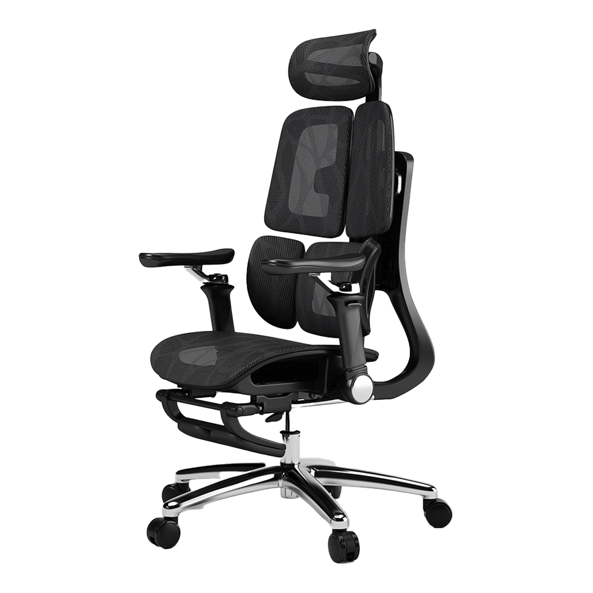 Podparcie odcinka lędźwiowego — Potrójne z dodatkowymi sprężynami, zaawansowany system wsparcia automatycznie dopasowuje się do ruchów pleców użytkownika (do 42° do środka i na zewnątrz, 15° góra dół), stabilizując kręgosłup i redukując napięcie w dolnym odcinku pleców.