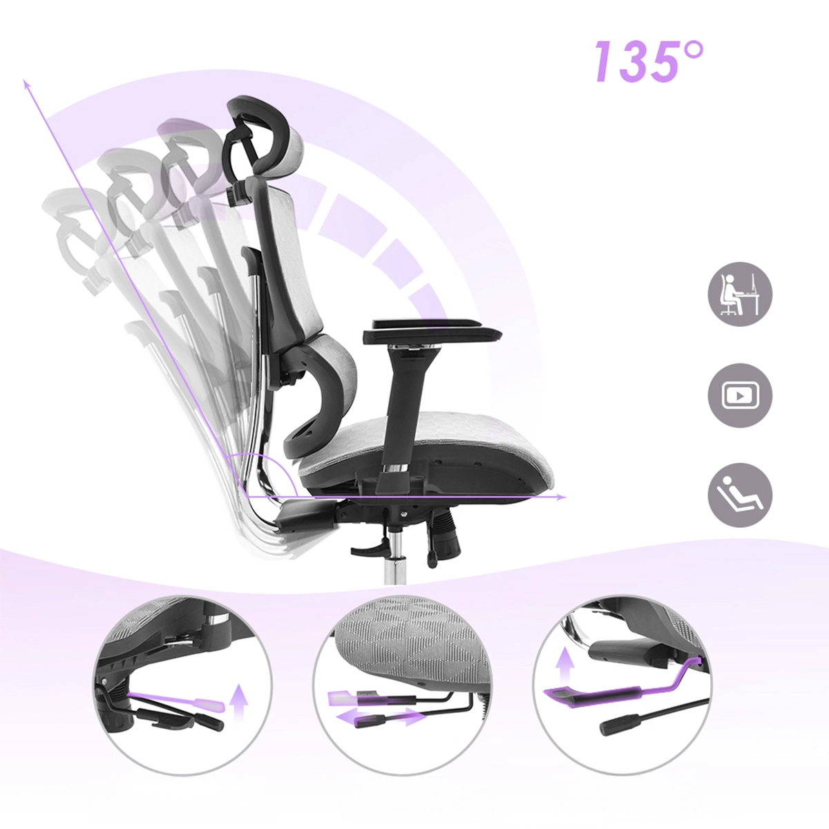 Krzesła i fotele do biura potrafią znacząco się od siebie różnić. Mimo że z wyglądu są podobne, ich funkcjonalność może być odrobinę inna. Za pomocą dźwigni znajdującej się pod siedzeniem jesteś w stanie regulować zarówno wysokość, jak i pochył fotela biurowego. Jesteś w stanie bardzo szybko i prosto dopasować krzesło do swoich potrzeb, bez potrzeby wstawania z niego. Jego wysokość możesz regulować w zakresie 114 - 132 cm. Natomiast pochył odbywa się w zakresie do 135°.