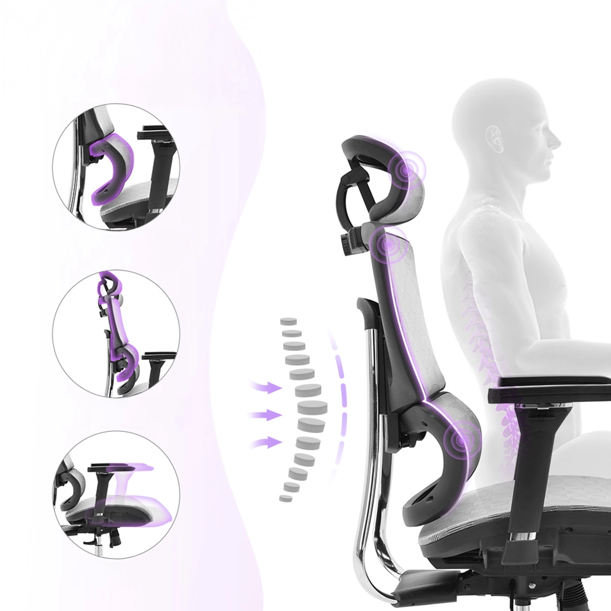 Tym, co sprawia, że krzesło Spacetronik SPC-MIRA jest ergonomiczne, są jego możliwości regulacyjne. Podłokietniki 4D, zagłówek 3D, wysokość czy też specjalne wsparcie na odcinek lędźwiowy kręgosłupa. Te wszystkie cechy sprawią, że będziesz mógł dostosować fotel do swoich indywidualnych potrzeb!